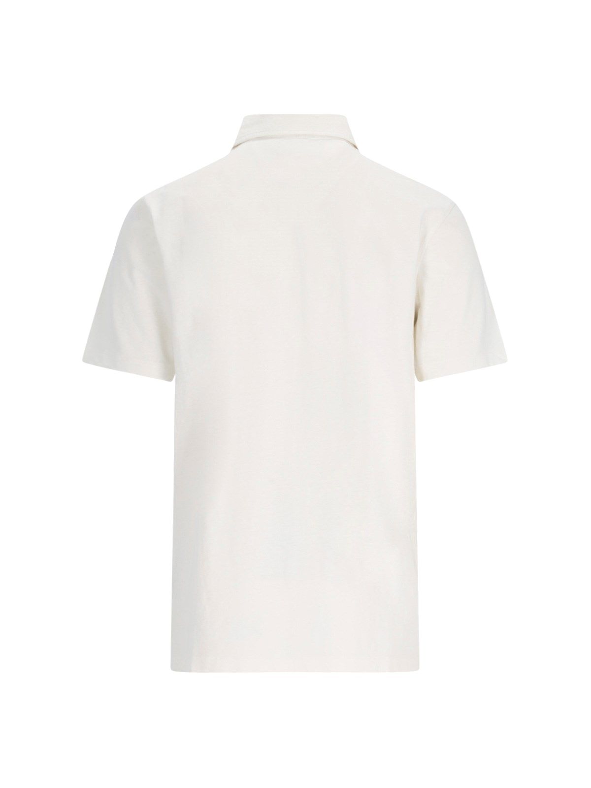 Polo Ralph Lauren-Logo-Poloshirt aus weißer Baumwolle und Leinen, klassischer Kragen, Knopfverschluss, kurze Ärmel, eine aufgesetzte Brusttasche, hellblaue Logo-Stickerei vorne unten, gerader Saum.