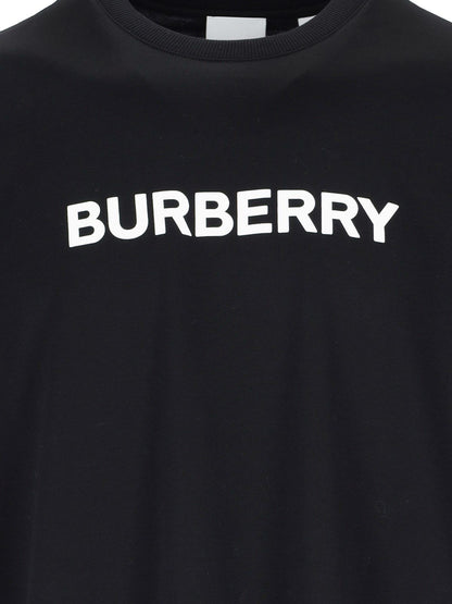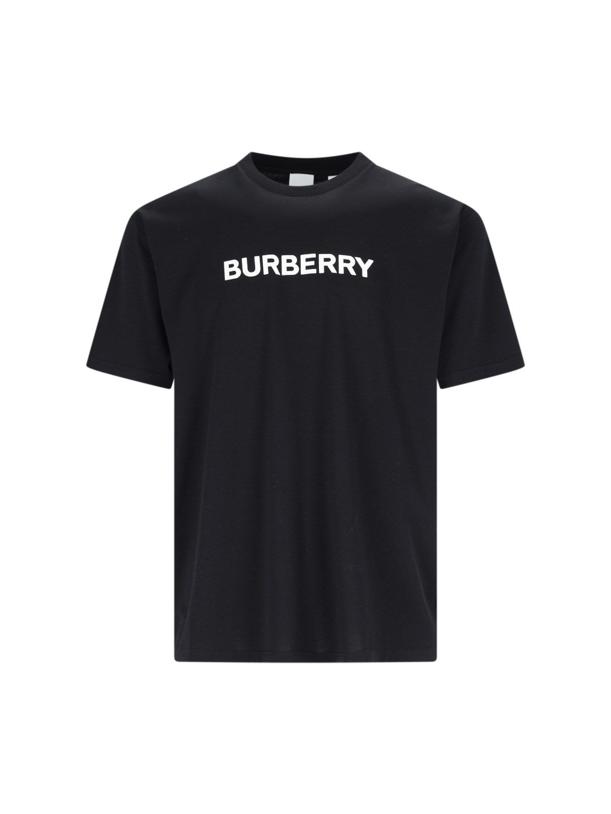 T-Shirt logo Burberry, in cotone nero, girocollo, maniche corte, stampa logo a contrasto fronte, orlo dritto.