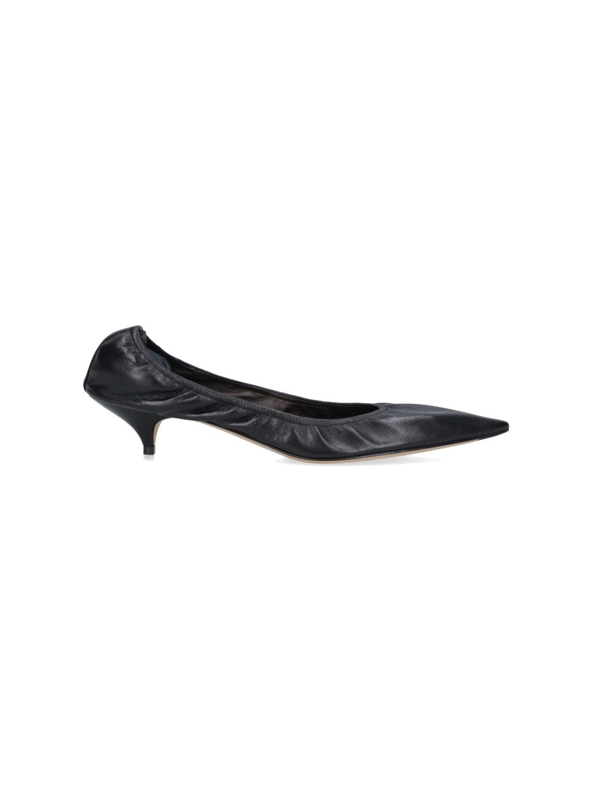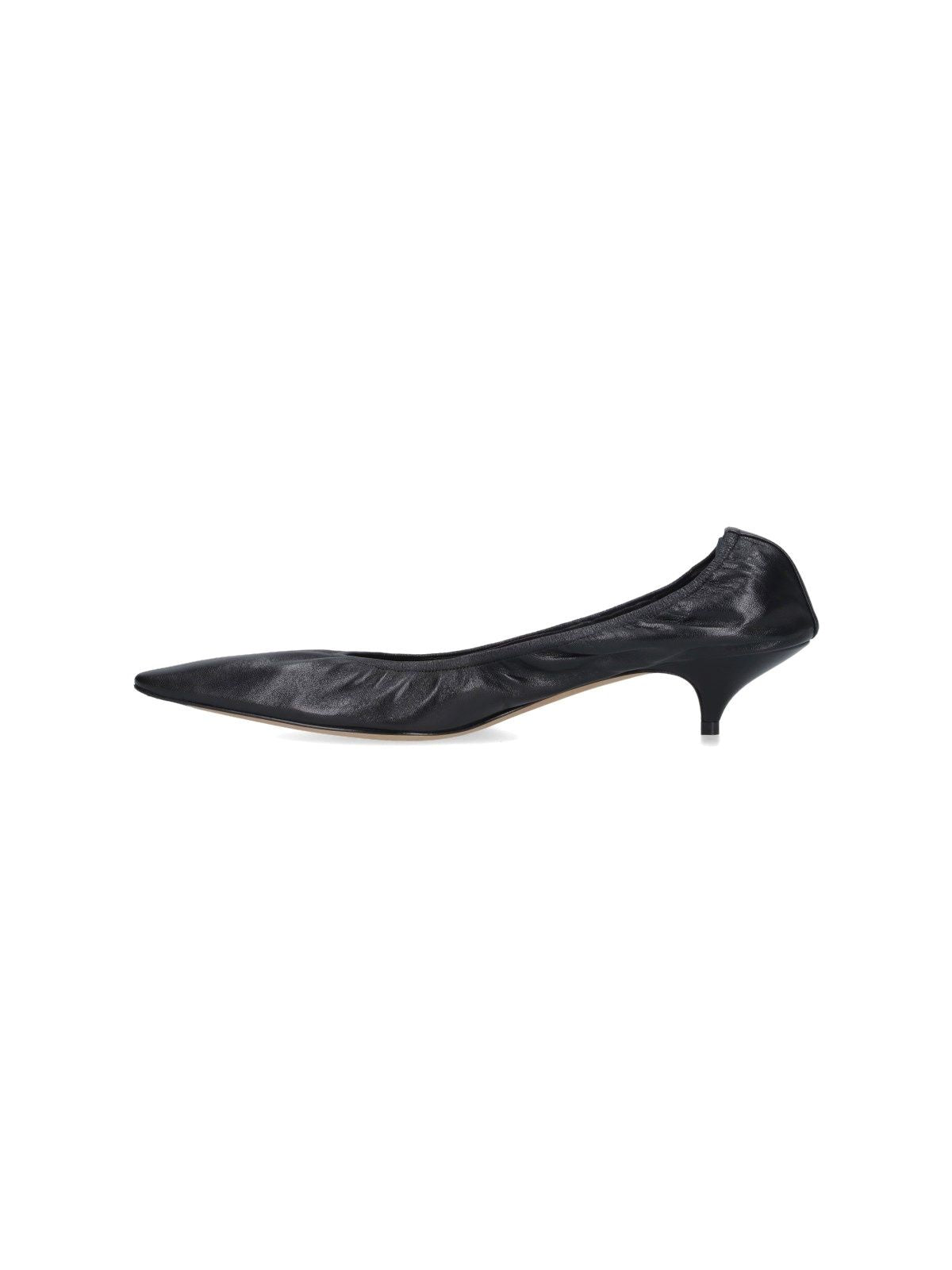 Pumps "Liisa" The Row, in pelle martellata nera, a punta, finiture elastiche, tacchetto, vestibilità slip-on, suola in pelle.