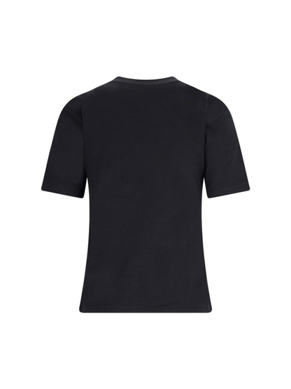 T-Shirt mit MSGM-Logo aus schwarzer Baumwolle, Rundhalsausschnitt, kurze Ärmel, kontrastierender Logoaufnäher vorne, gerader Saum.