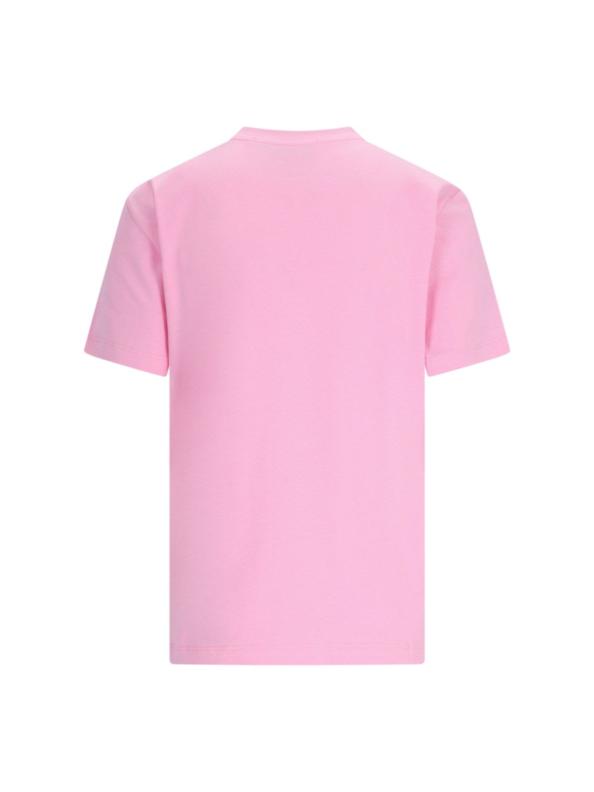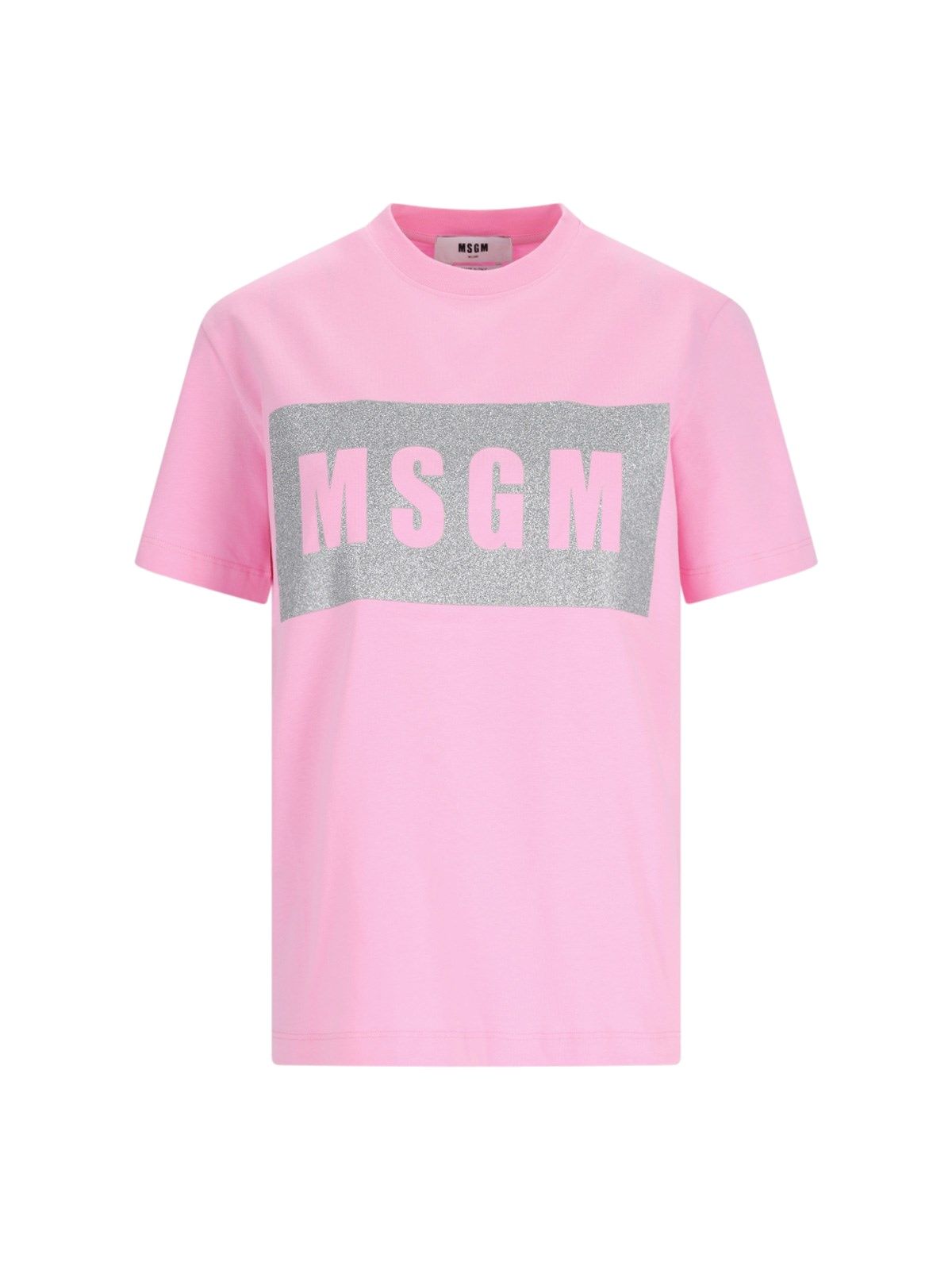 T-Shirt mit MSGM-Print aus rosa Baumwolle, Rundhalsausschnitt, kurze Ärmel, silberner Logo-Print mit Glitzer auf der Vorderseite, gerader Saum.