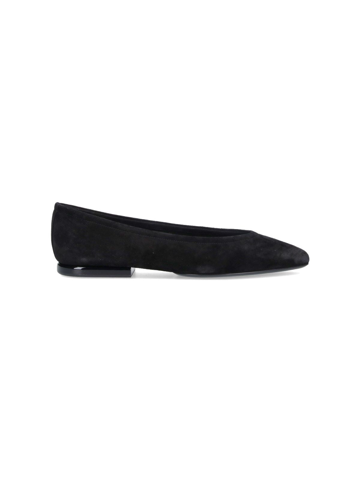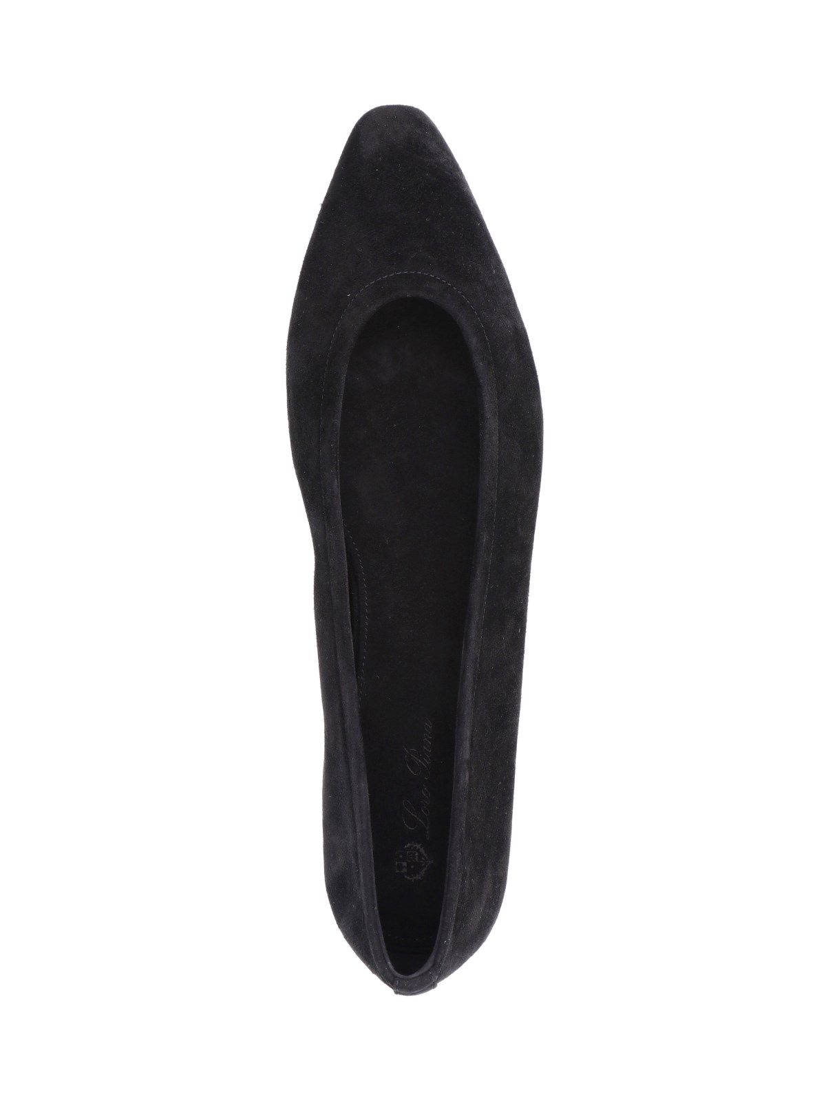 Ballerine "Primula" Loro piana, in suede nero, a punta, vestibilità slip-on, suola in pelle tono su tono.
