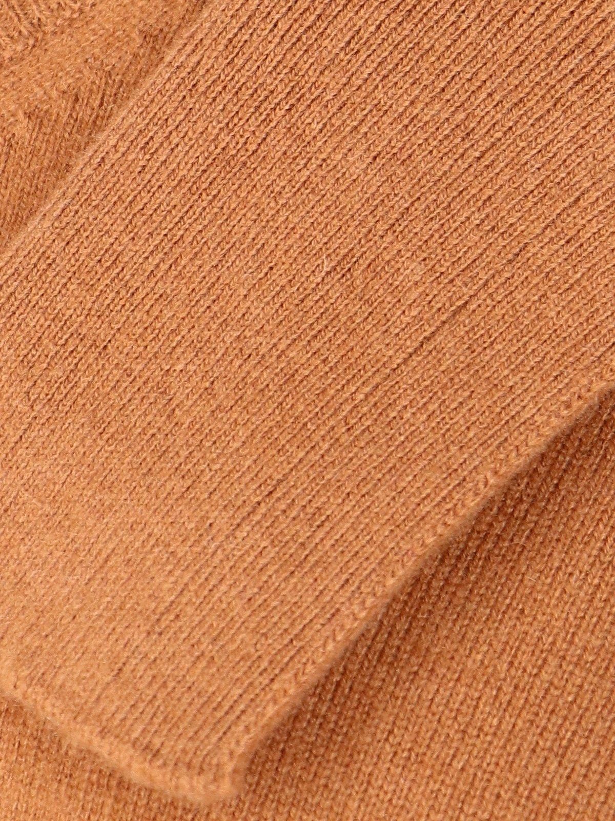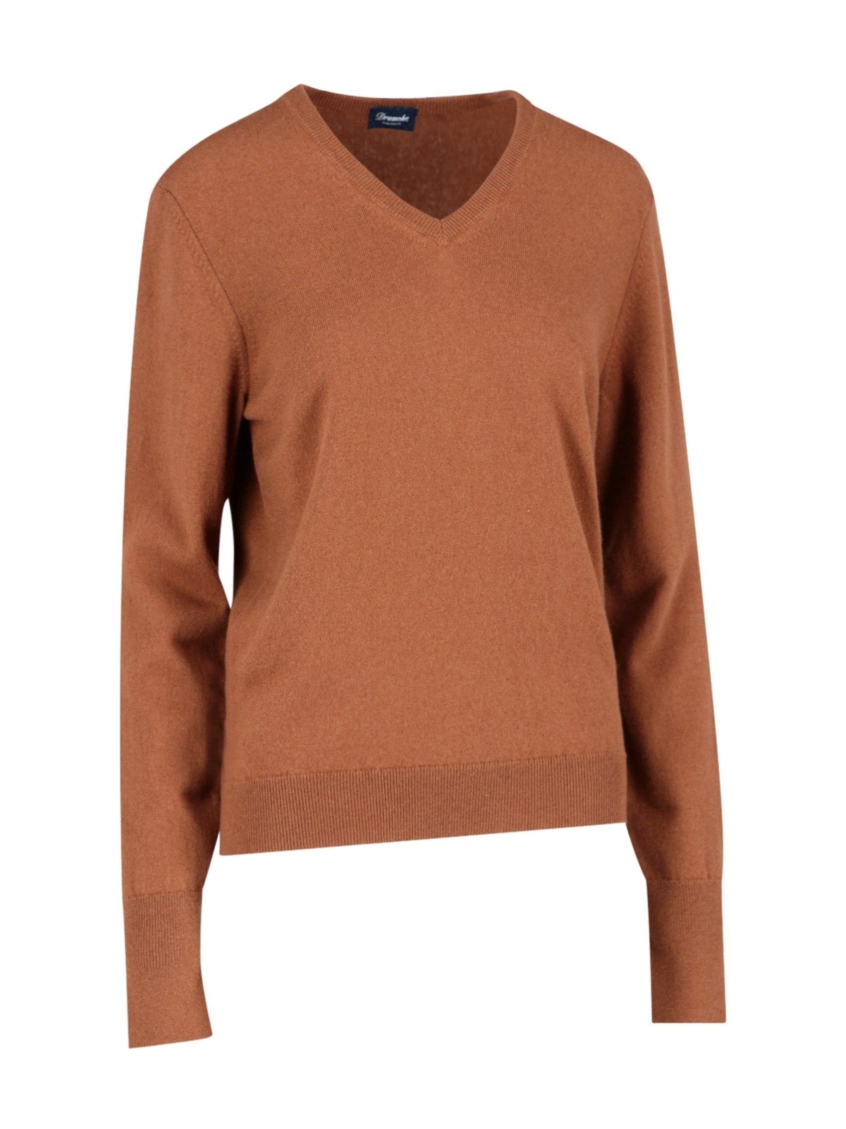 Maglione Scollo a V Drumohr, in cashmere beige, maxi polsini, finiture a costine, orlo dritto.