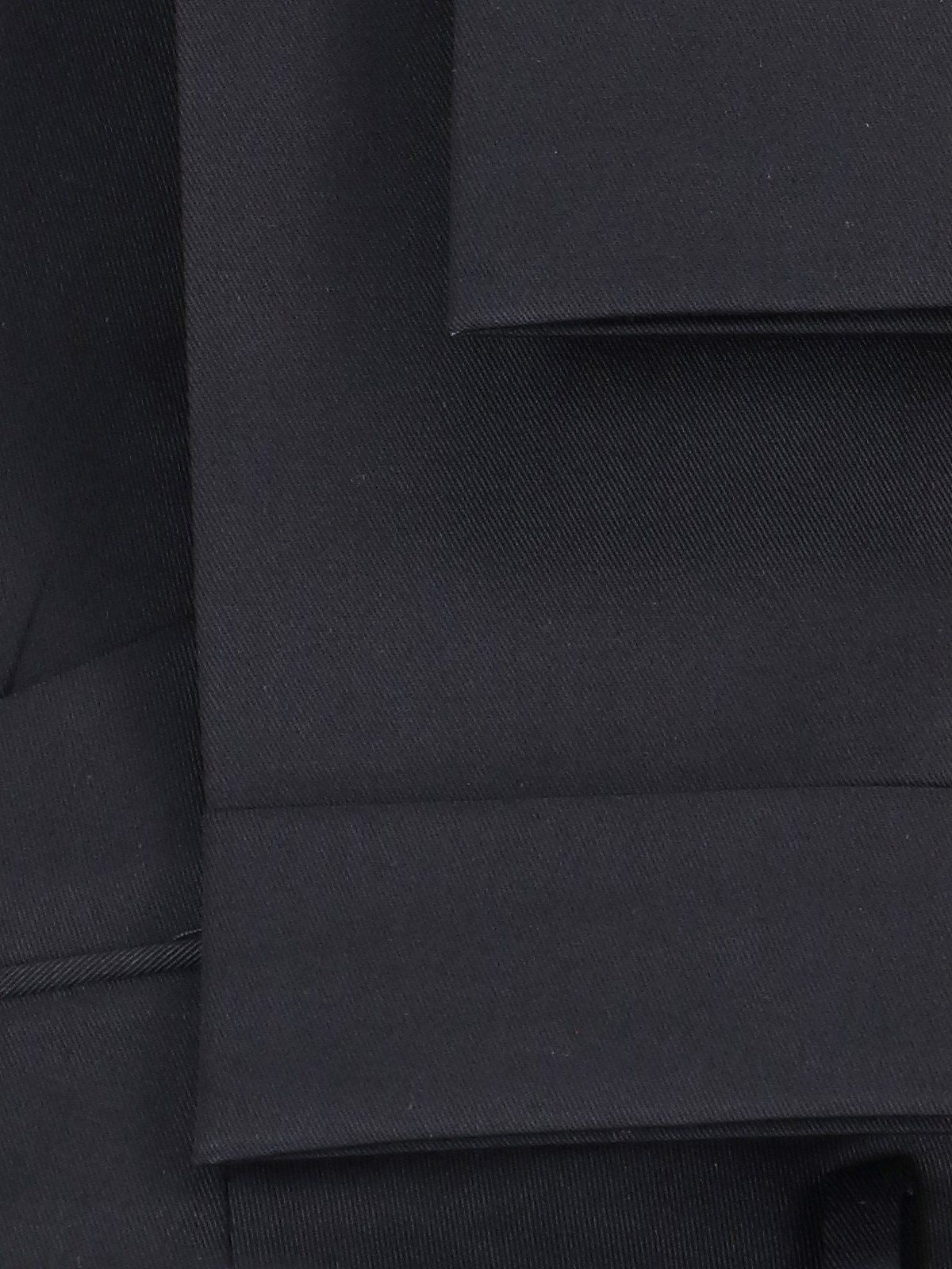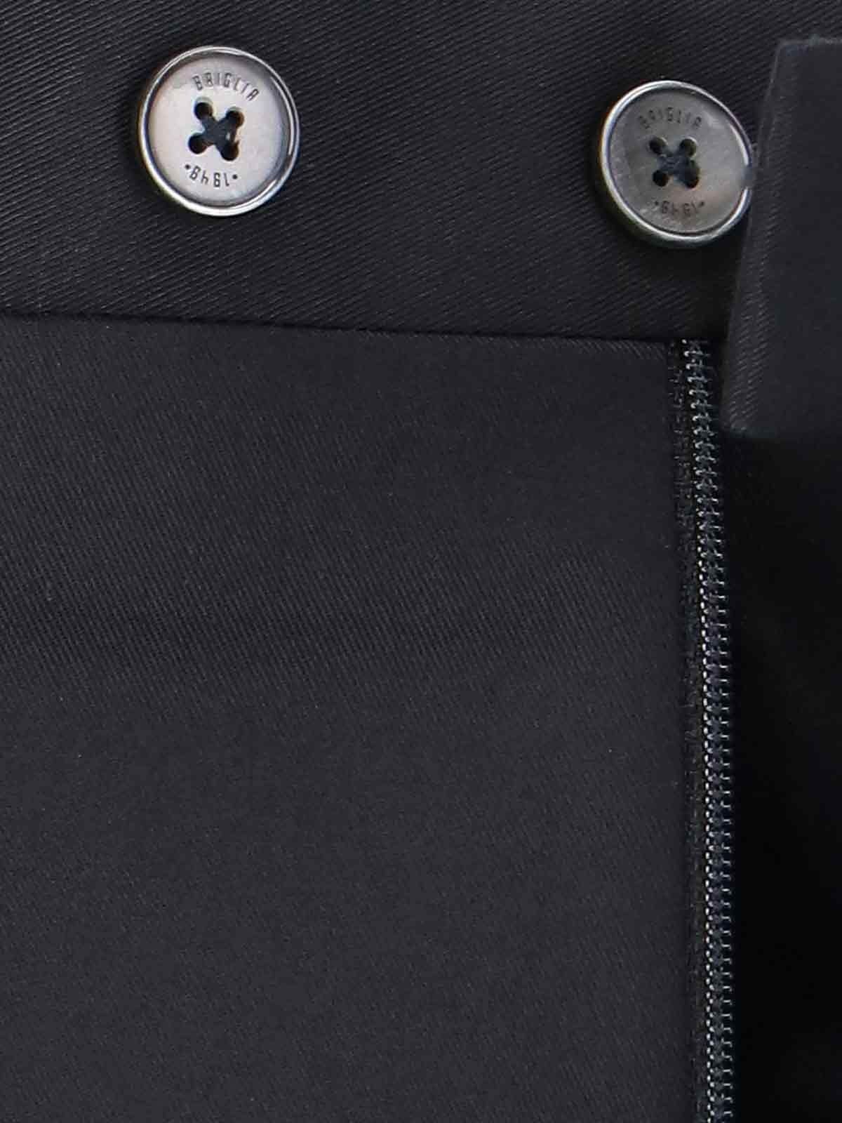 Maßgeschneiderte Hose von Briglia 1949 aus schwarzer Stretch-Baumwolle, Gürtelschlaufen, Reißverschluss und Knopfverschluss, Mittelfalten, zwei Seitentaschen, weißes Logo-Etikett auf der Rückseite, zwei Pattentaschen auf der Rückseite, Umschlag unten.