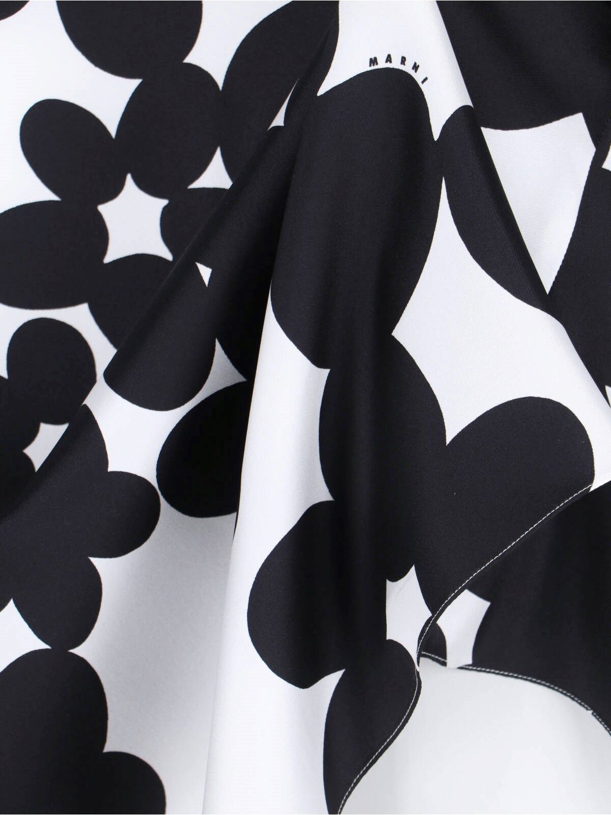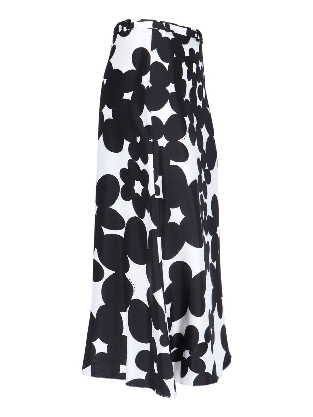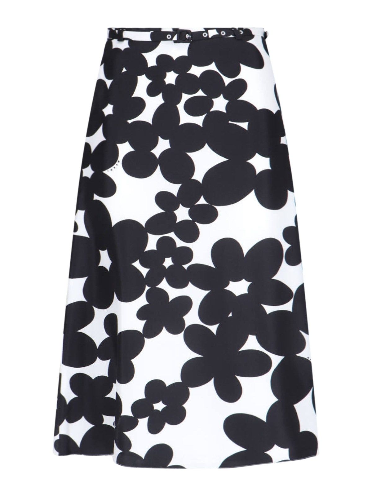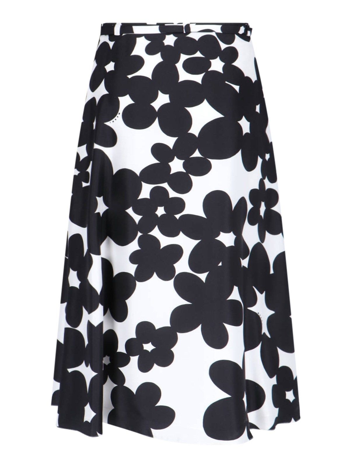 Gonna midi in seta "Dillies" Marni, bianca, motivo floreale a contrasto, vita media, dettaglio cintura rimovibile, chiusura zip laterale, ricamo logo a contrasto fronte, orlo dritto.
