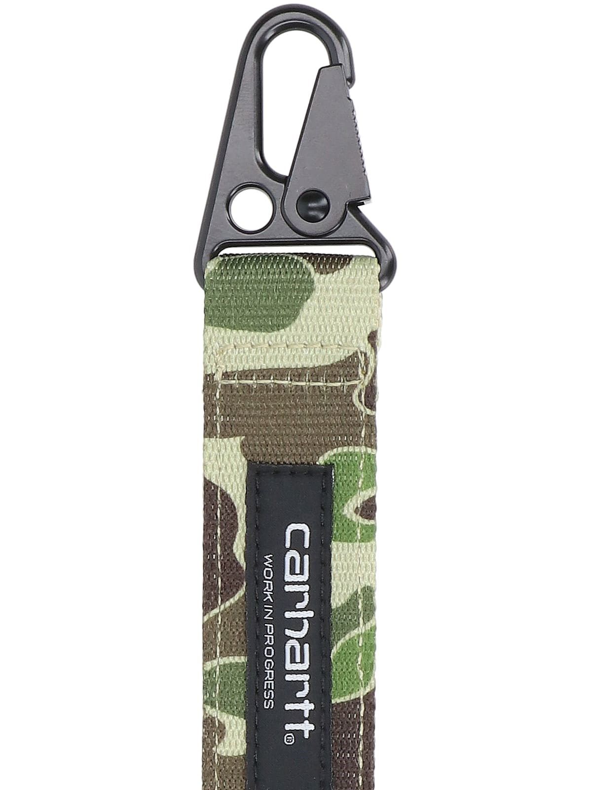 Portachiavi "Jude" Carhartt WIP, in tessuto verde, motivo Camo, dettagli multicolor, etichetta logo fronte, dettaglio gancio, anello in ferro nero.
