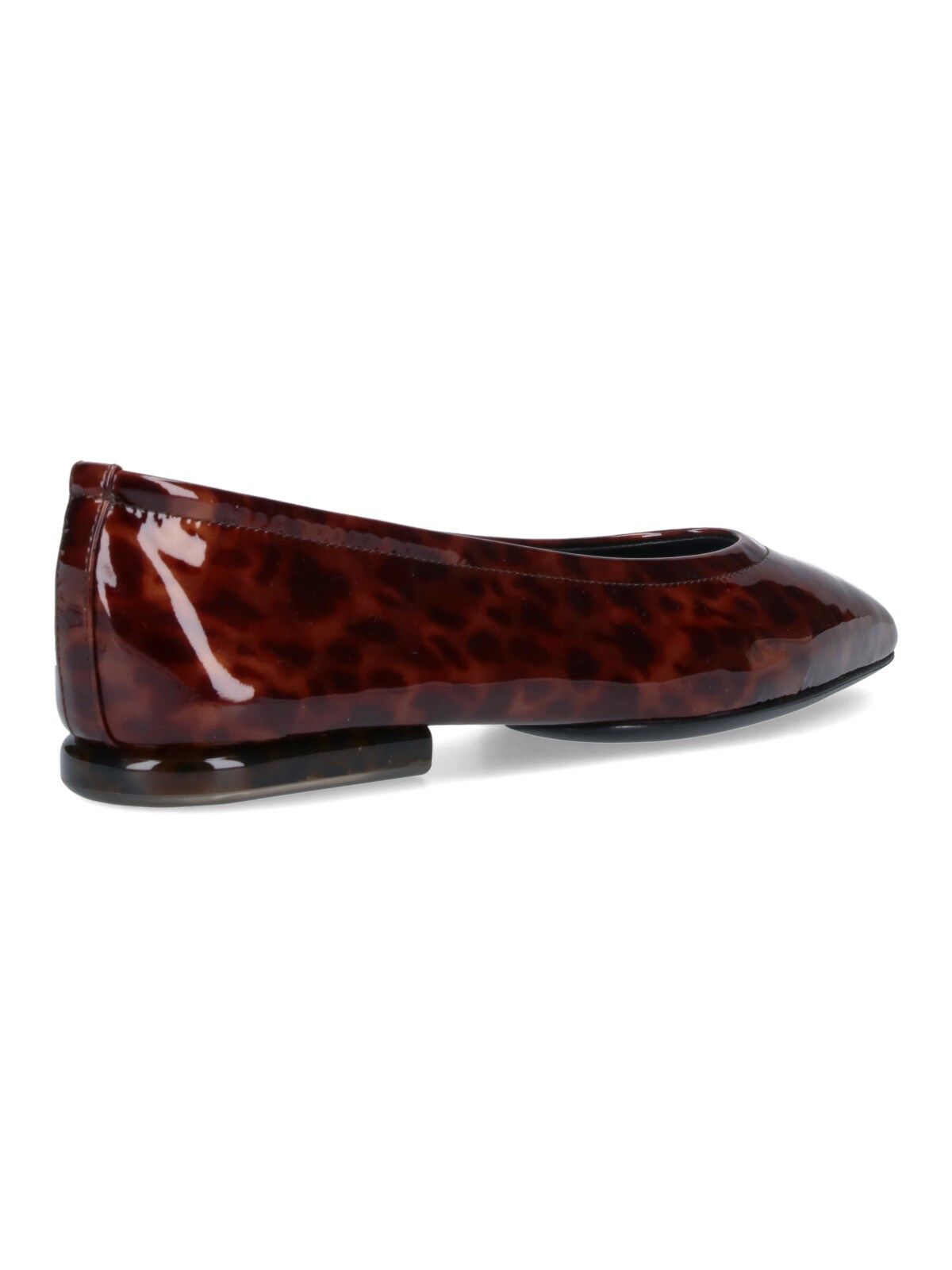 Ballerine animalier "Primula" Loro Piana, in vernice marrone, motivo stampa tartarugata, dettagli neri, a punta, vestibilità slip on, suola in pelle.