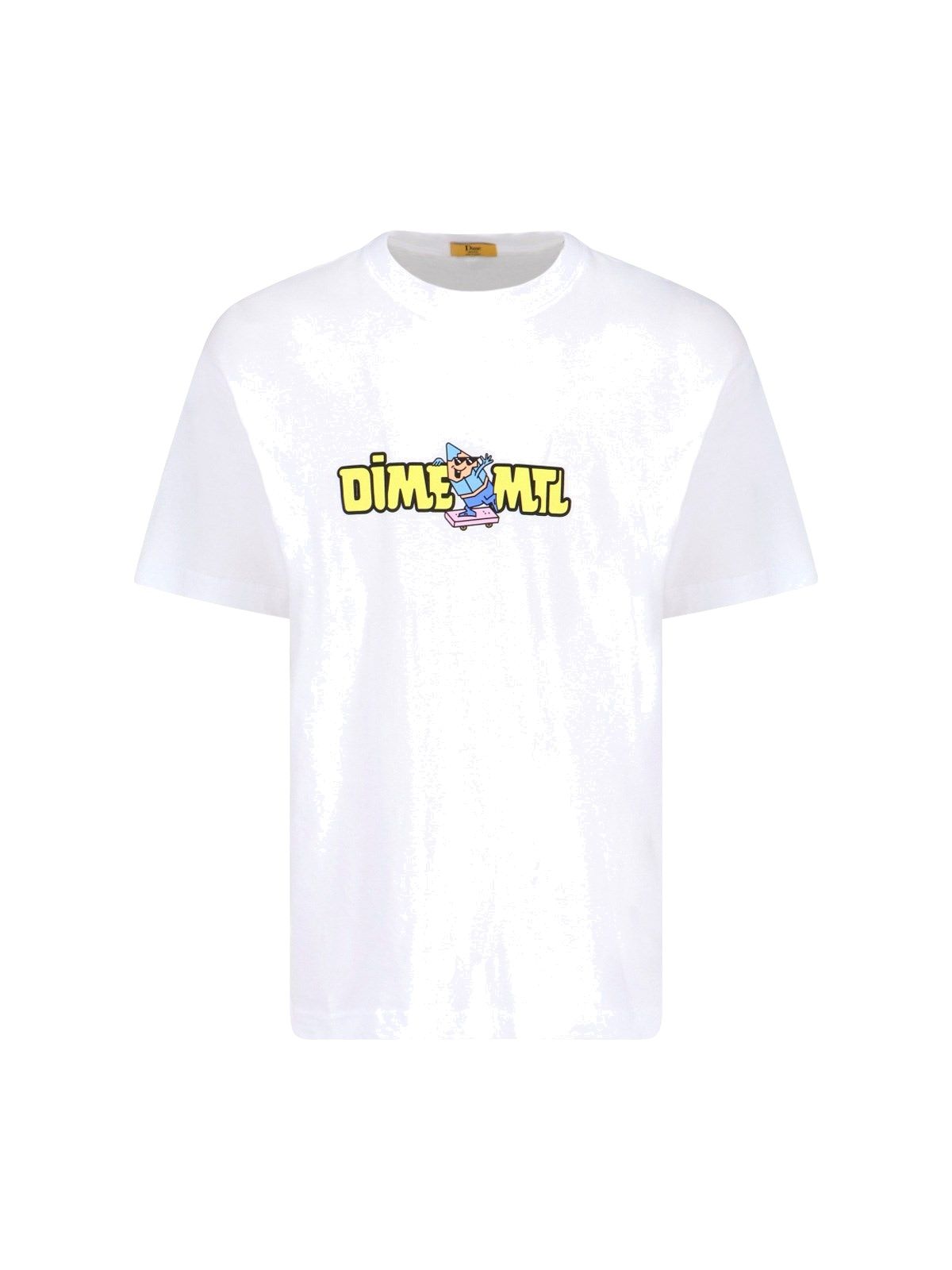„Crayon“ Dime T-Shirt aus weißer Baumwolle, Rundhalsausschnitt, kurze Ärmel, mehrfarbiger Aufdruck auf der Vorderseite, gerader Saum.