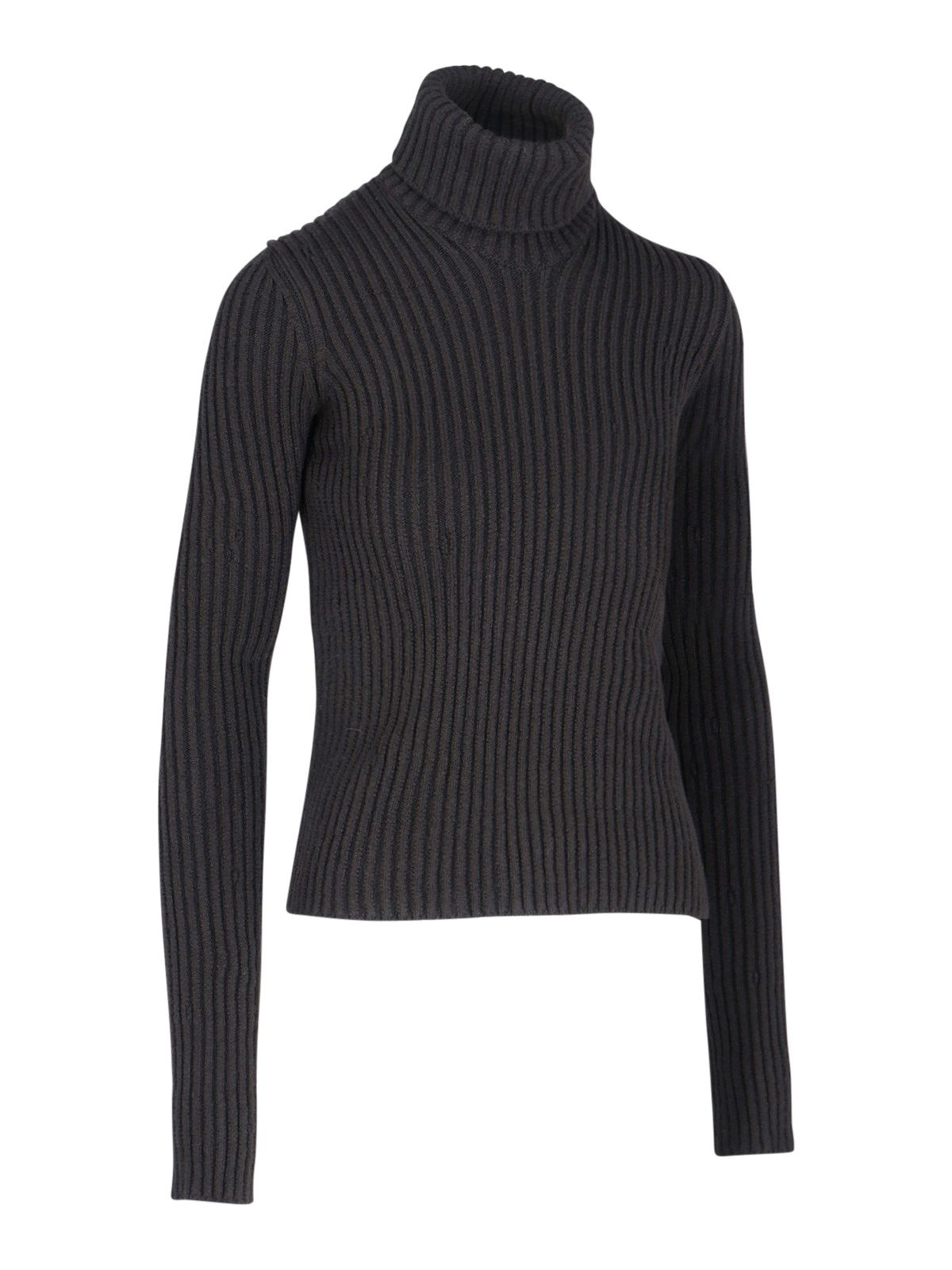 Maglione a coste Bottega Veneta, collo alto, maniche lunghe, orlo dritto.