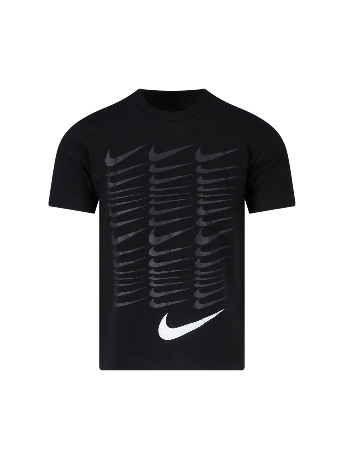 T-shirt stampata Comme des Garcons BLACK x Nike, girocollo, maniche corte, stampa logo tono su tono fronte, dettaglio stampa logo a contrasto fronte, orlo dritto.