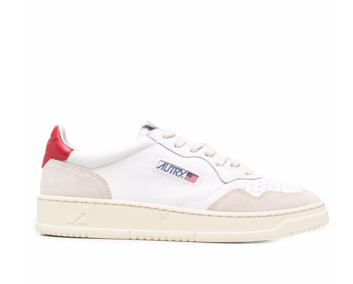 Sneakers Medalist in pelle e camoscio con talloncino a contrasto rosso.