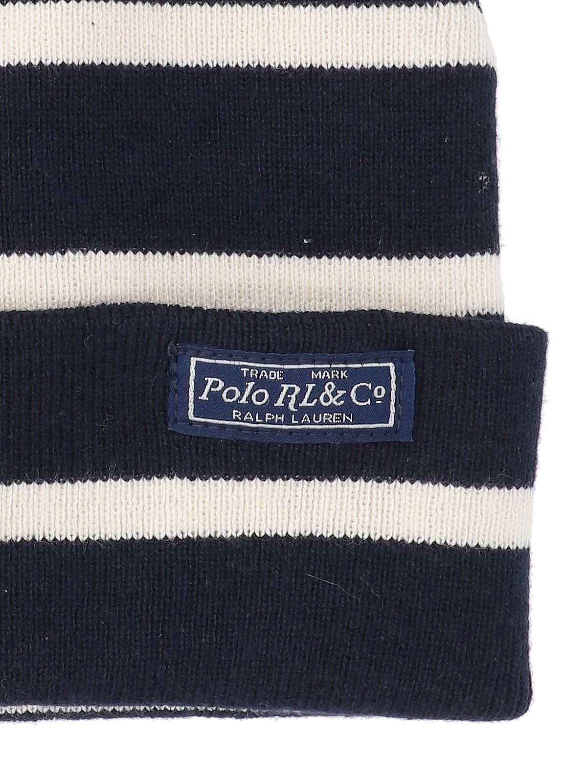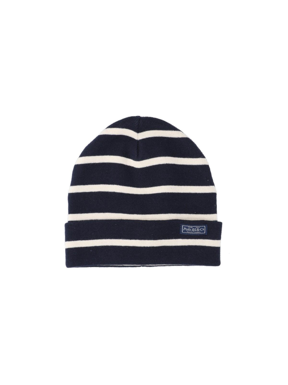 Polo Ralph Lauren gestreifte Kappe aus blauer Baumwolle, cremefarbenes Detailmuster, Ton-in-Ton-Logo-Etikett, Bündchendesign.