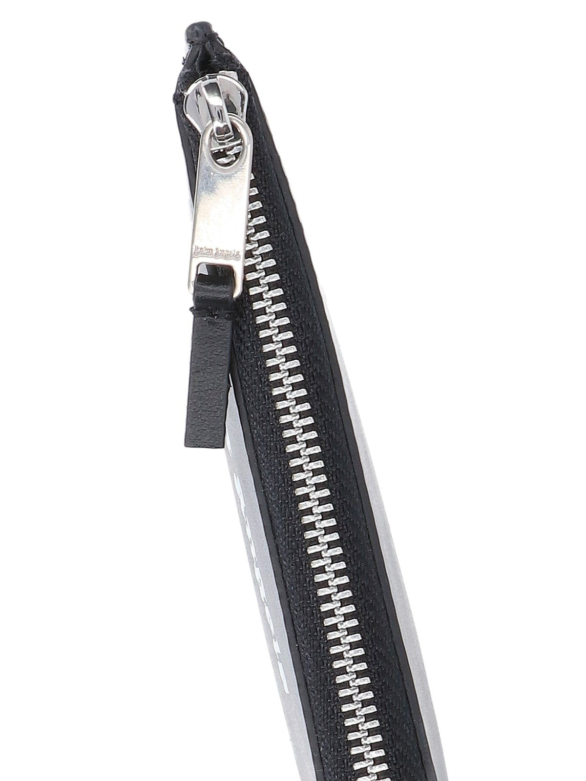 Palm Angels-Logo-Kartenetui aus schwarzem Leder, weißer Logo-Aufdruck vorne, Reißverschluss, ein Innenfach, vier interne Kartenfächer.
