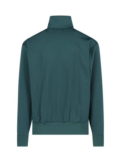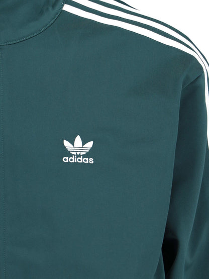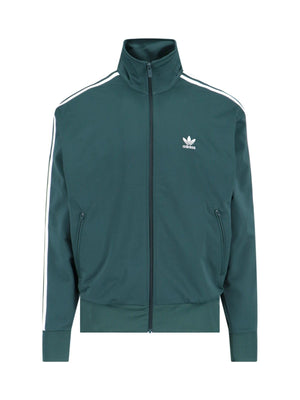 Felpa zip "Classics Firebird" Adidas, in tessuto verde, a collo alto, chiusura zip, ricamo logo "Trefoil" petto, due tasche zip laterali, bande iconiche laterali, finiture a costine, orlo dritto.