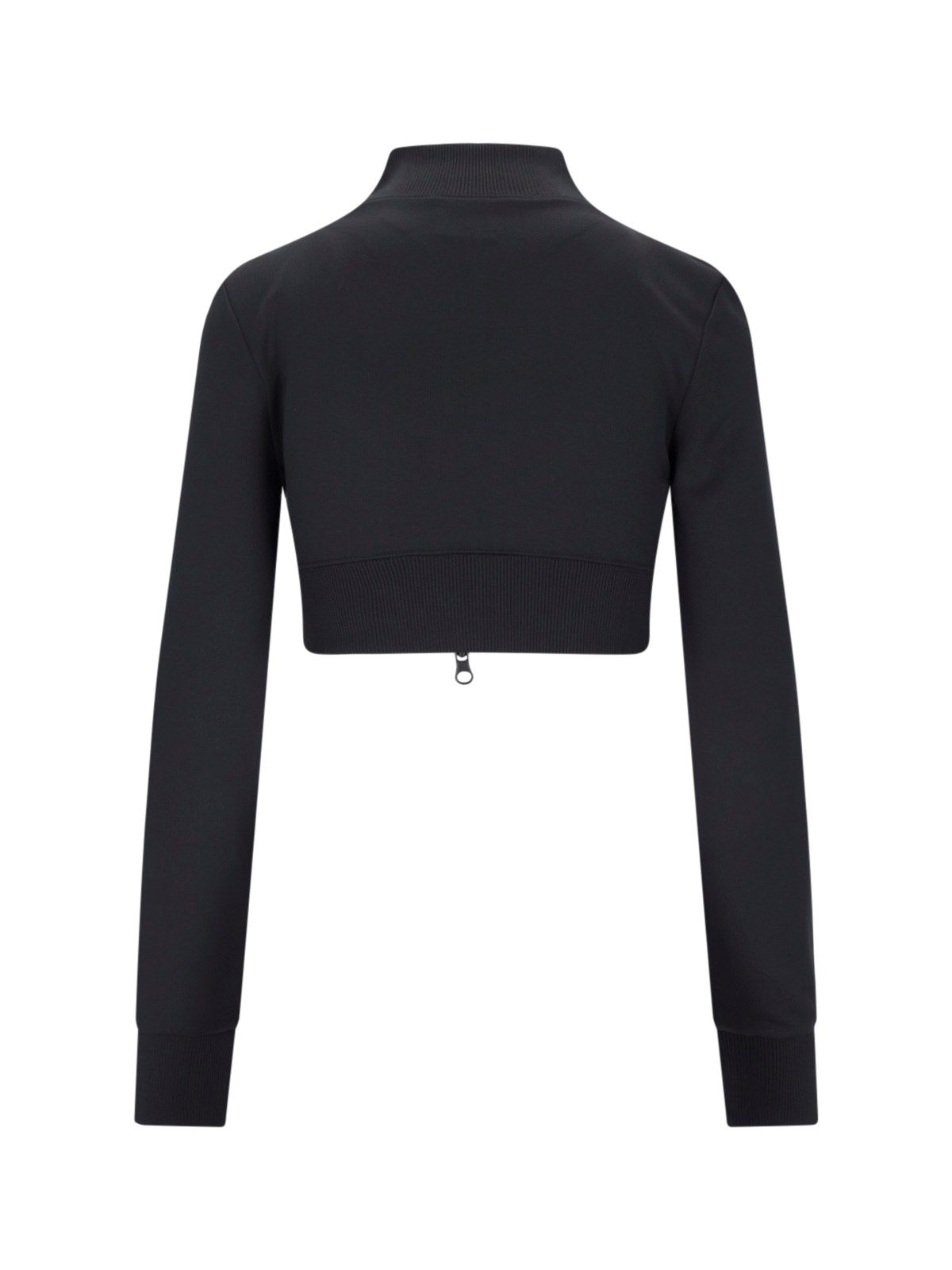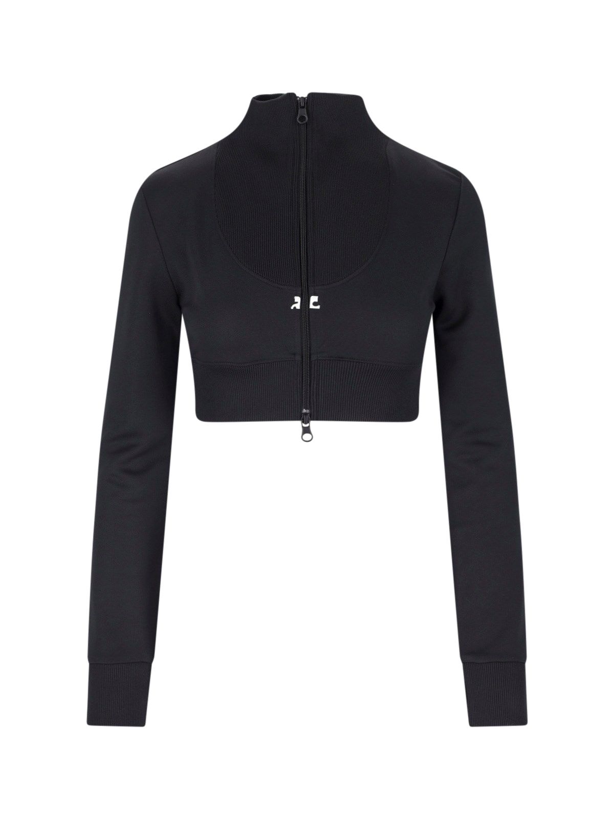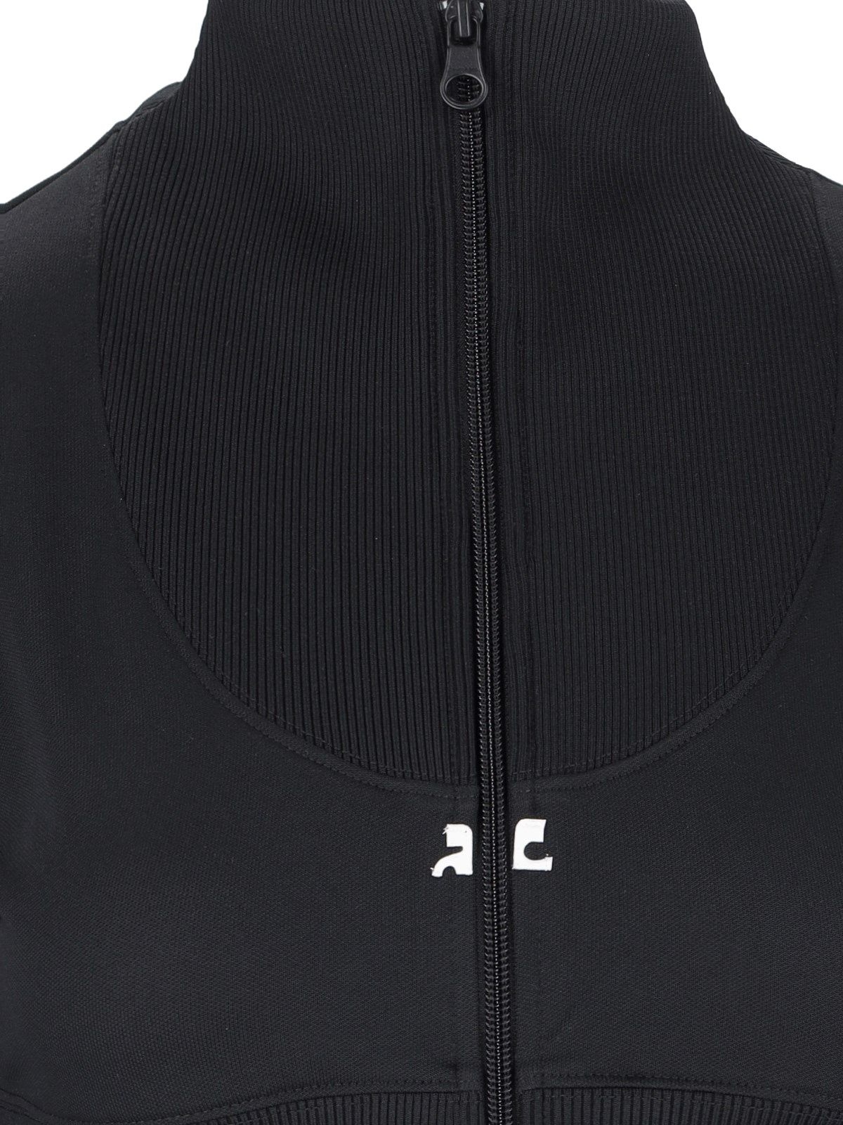 Felpa logo Courrèges, in tessuto nero, collo alto dettaglio costine, chiusura zip, stampa logo fronte, fondo e polsini costine, orlo dritto.