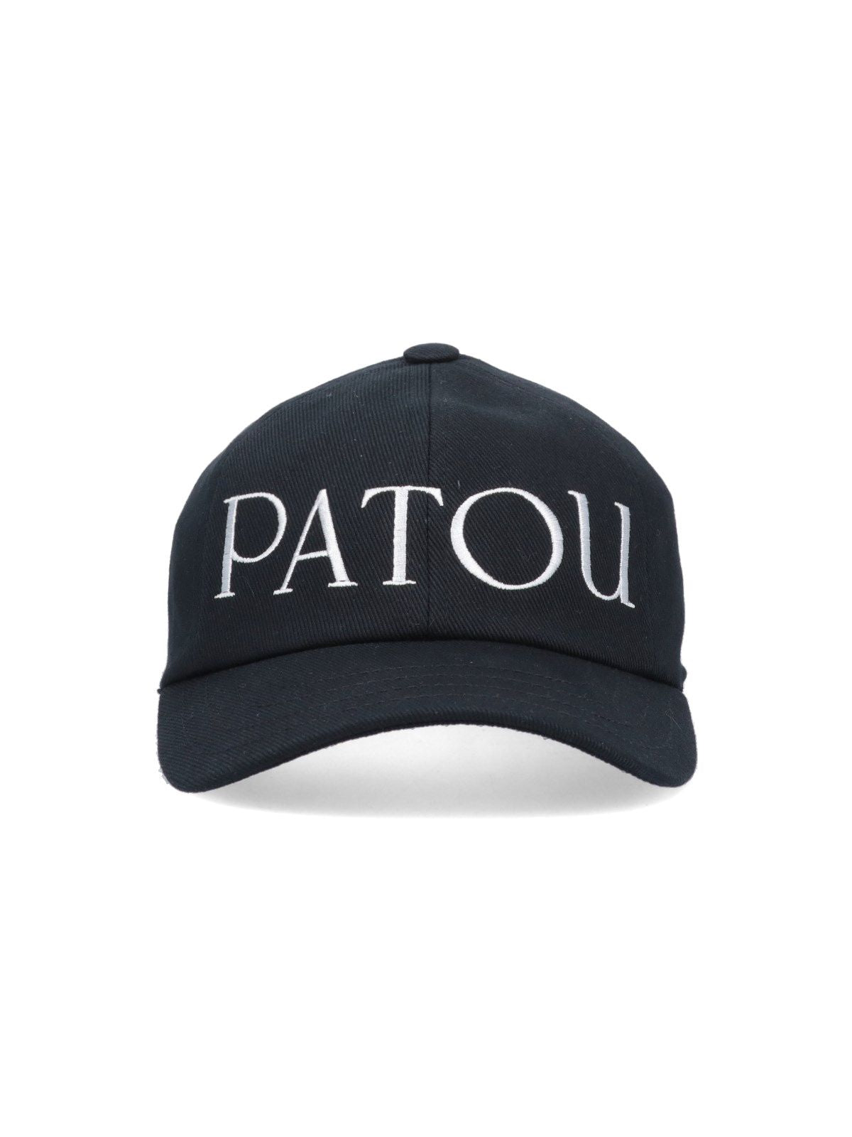Cappello baseball logo Patou, in cotone nero, visiera tonda, stampa logo fronte, regolabile.