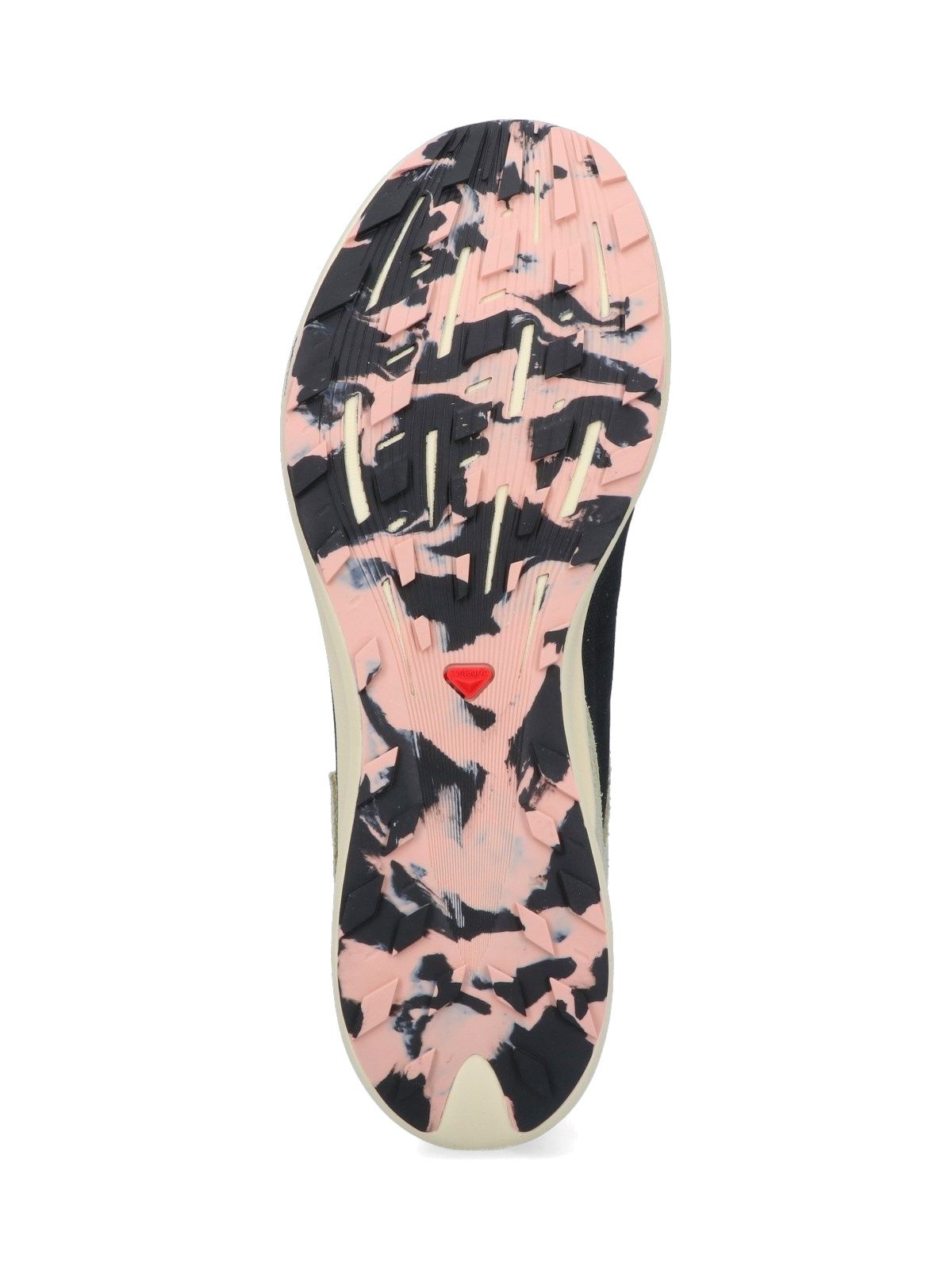 Salomon "Pulsar PRG" sneakers, in black mesh, green suede panels, round toe, lace-up fastening, embossed logo on the side, cream rubber cushioned sole.