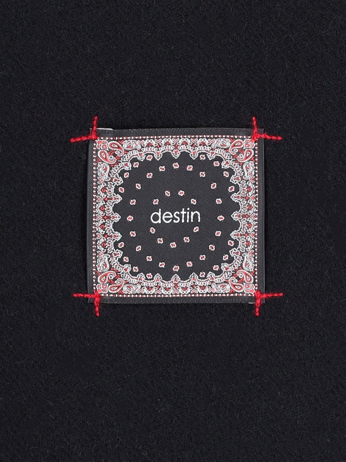 Destin fringe scarf, in wool and cashmere, blue, logo label on the back, fringes on the bottom.