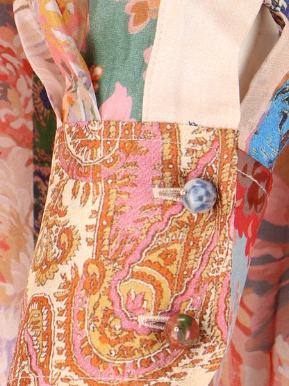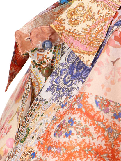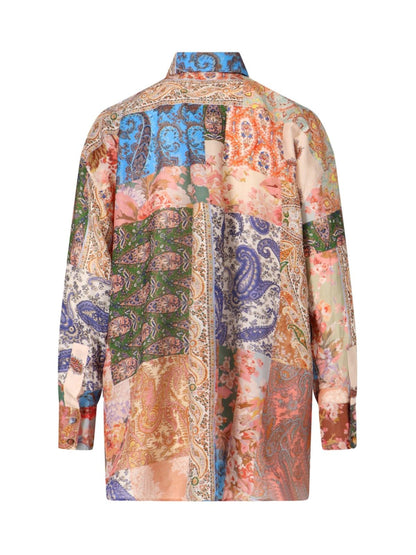 Zimmermann "Devi Manstyle" shirt, in multicolored silk, all-over paisley print, camp collar, button fastening, button cuffs, straight hem.