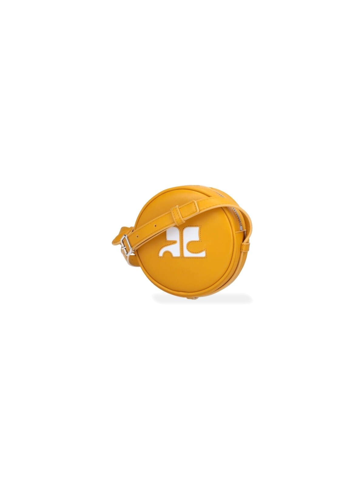 Borsa mini "Reedition Circle" Courrèges, in pelle gialla, tracolla regolabile, logo bianco fronte, scomparto interno unico.