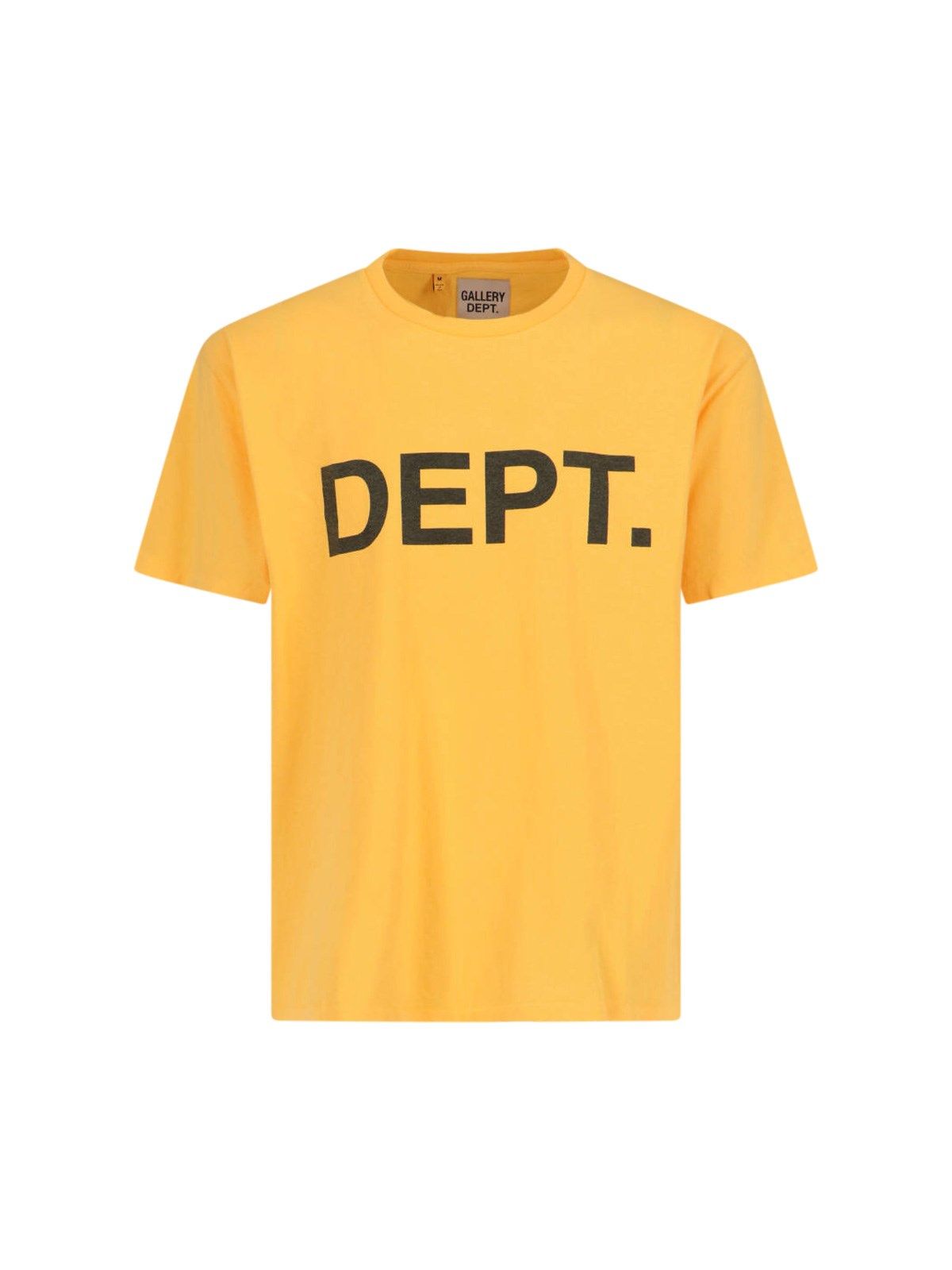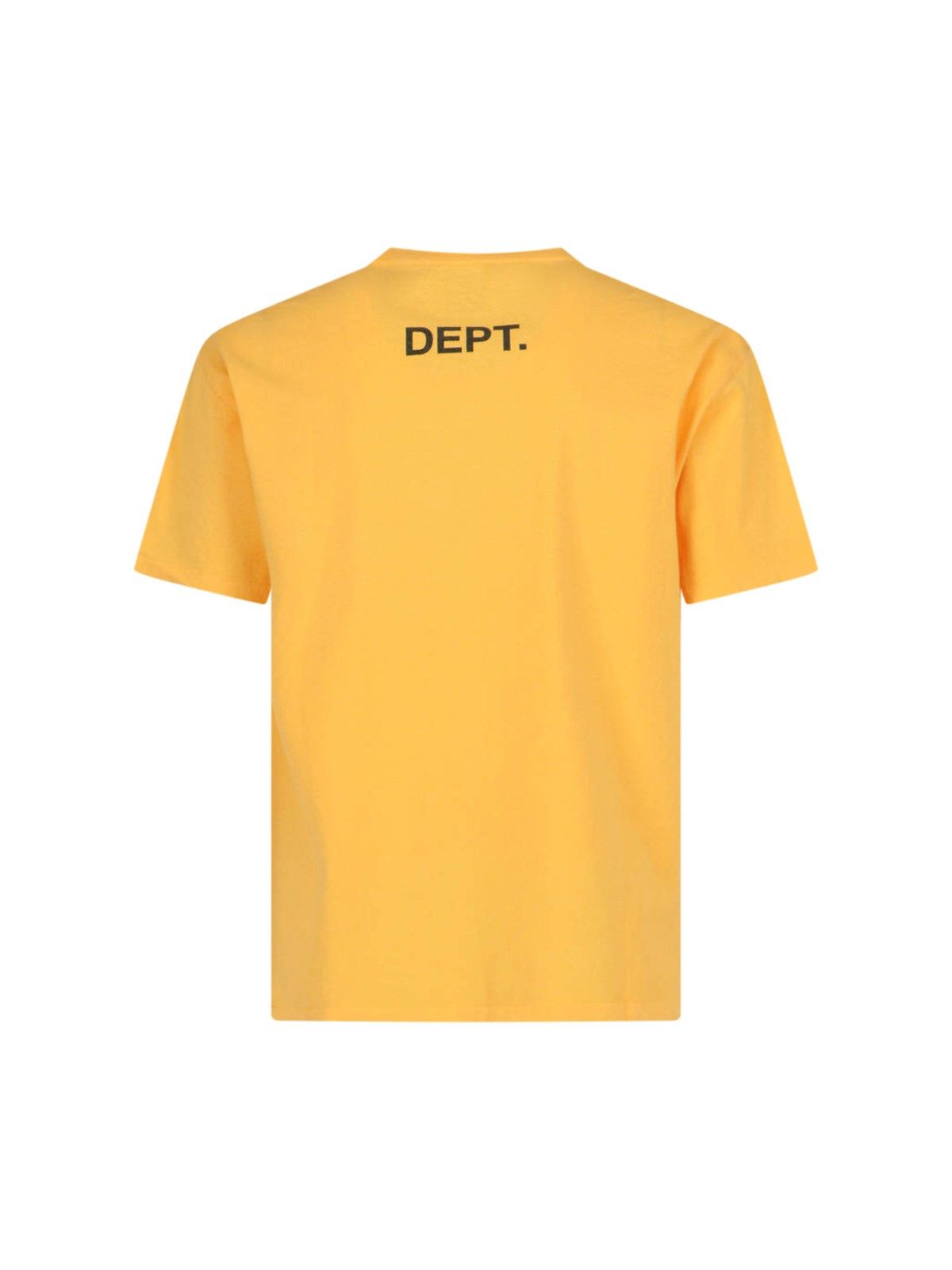T-shirt crop logo Gallery Dept., in cotone giallo, girocollo, maniche corte, maxi stampa logo nera petto, stampa logo nera retro, orlo dritto.