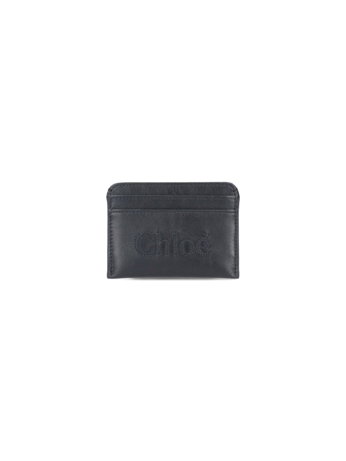 Portacarte "Sense" Chloè, in pelle nera, una tasca piatta superiore, due slot carte fronte, ricamo logo tono su tono fronte, due slot carte retro.