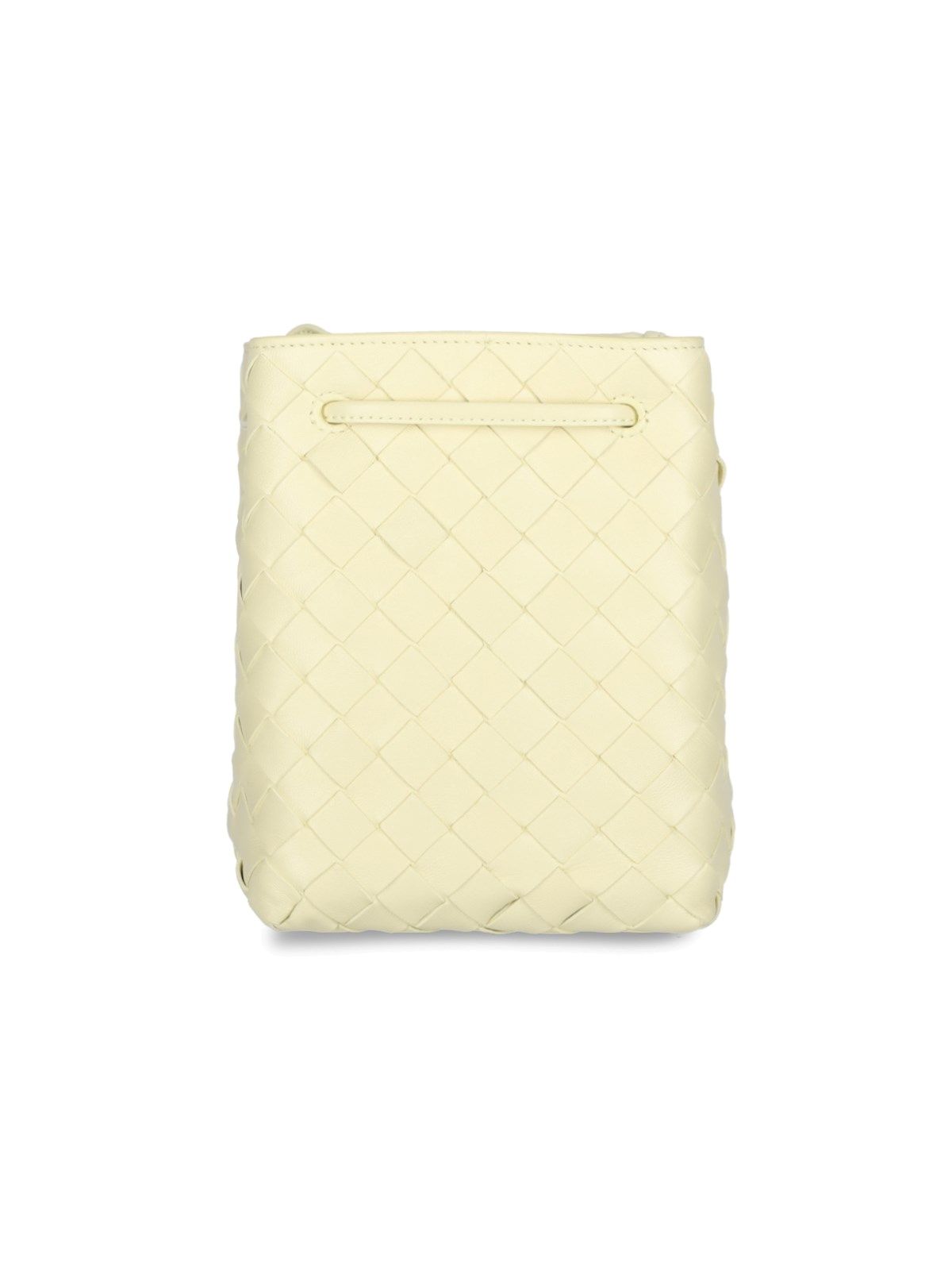 Borsa Bucket Piccola Intrecciato Bottega Veneta, in pelle gialla, tracolla dettagli metallici dorati, chiusura coulisse, logo inciso interno, scomparto interno unico.
