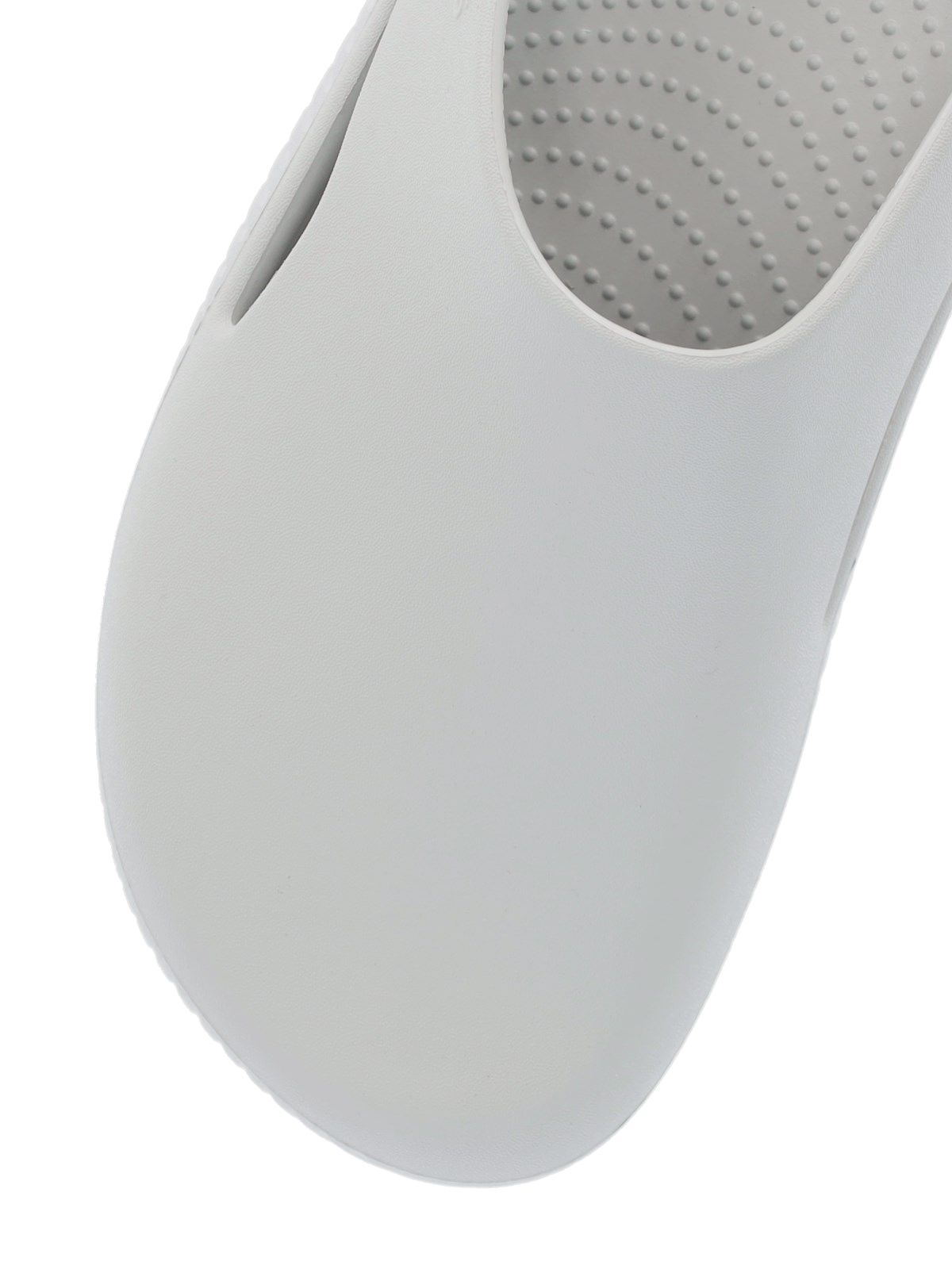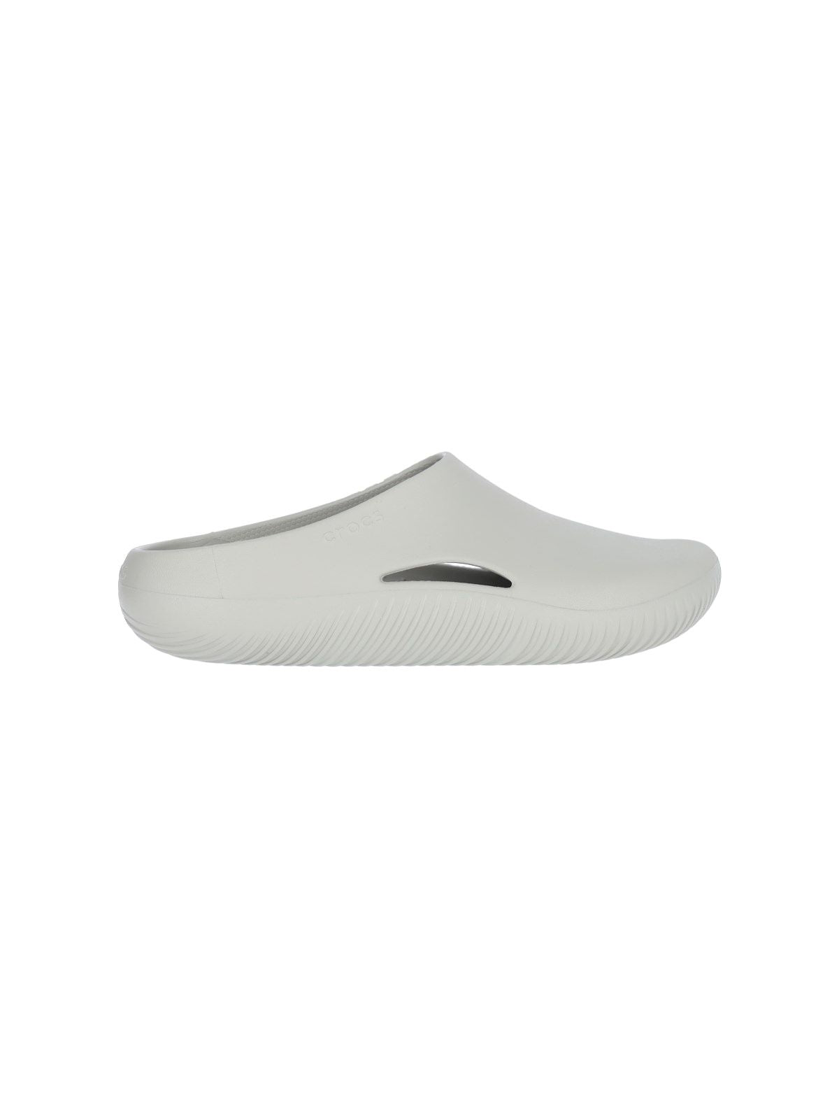 Crocs "Mellow" mules, in grey Croslite™, round toe, side cutouts, slip-on fit.