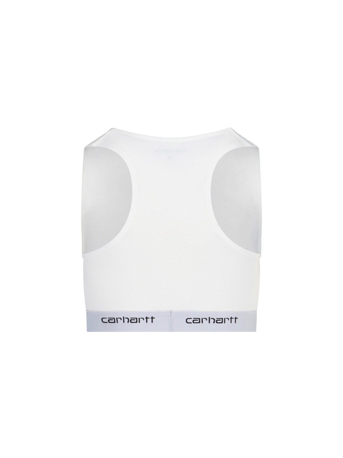 Top sportivo "Script Racer" Carhartt WIP, in misto cotone bianco, girocollo, smanicato, fascia elastica con stampa logo a contrasto, orlo dritto.