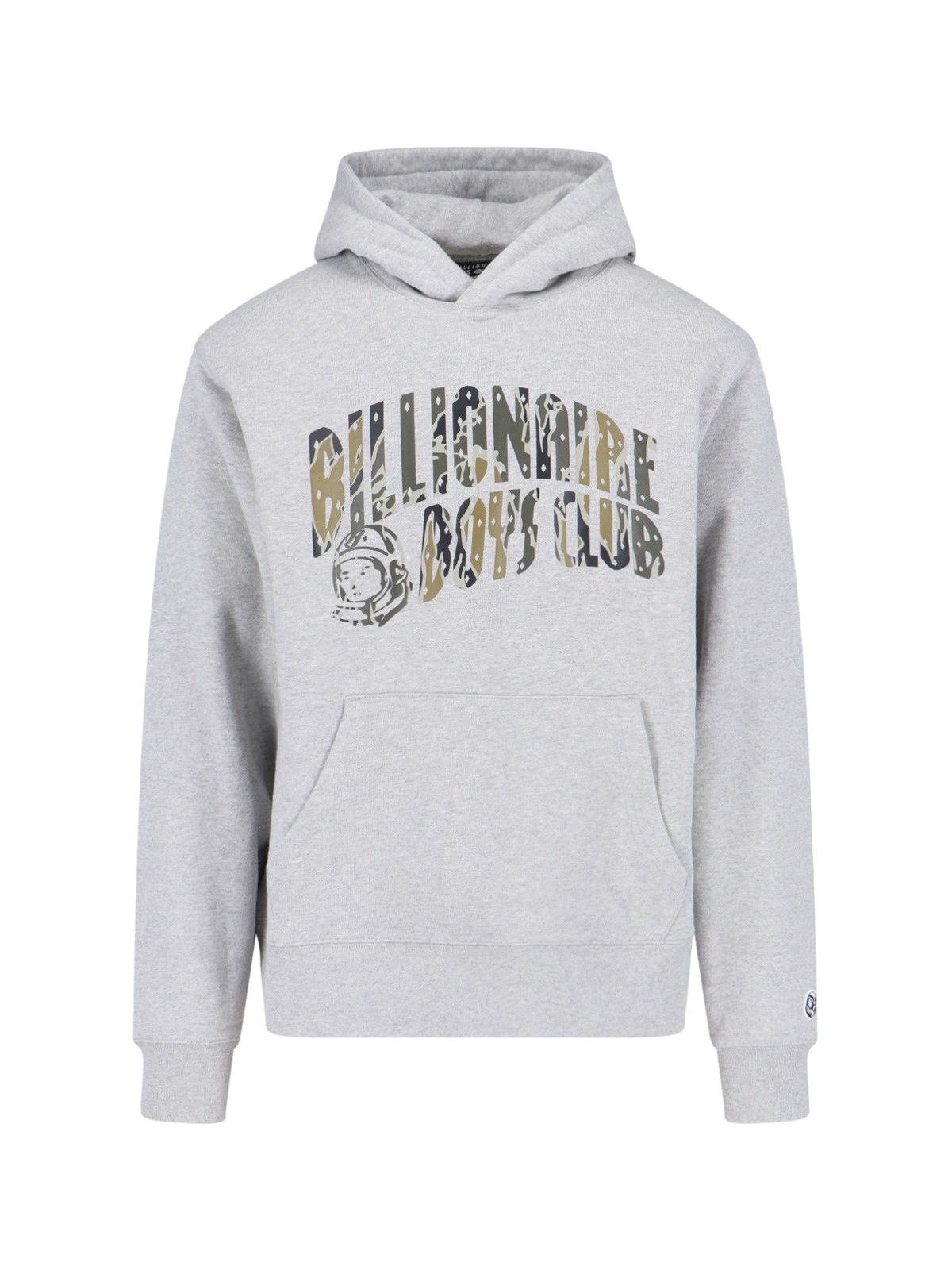 Felpa cappuccio "Camo Arch" Billionaire Boys Club, in cotone grigio, dettagli multicolor, stampa Camo logo fronte, una tasca maxi fronte, stampa logo bianca laterale, stampa logo Astronaut taupe retro, finiture a costine, orlo dritto.