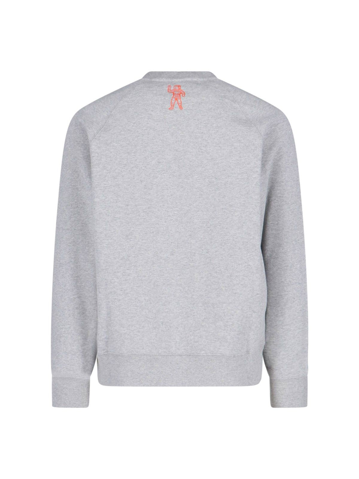 Felpa "Tropical Island Fill Arch" Billionaire Boys Club, in cotone grigio, girocollo, stampa logo multicolor petto, logo nero manica, logo "Standing Astronaut" arancione retro, finiture a costine, orlo dritto.