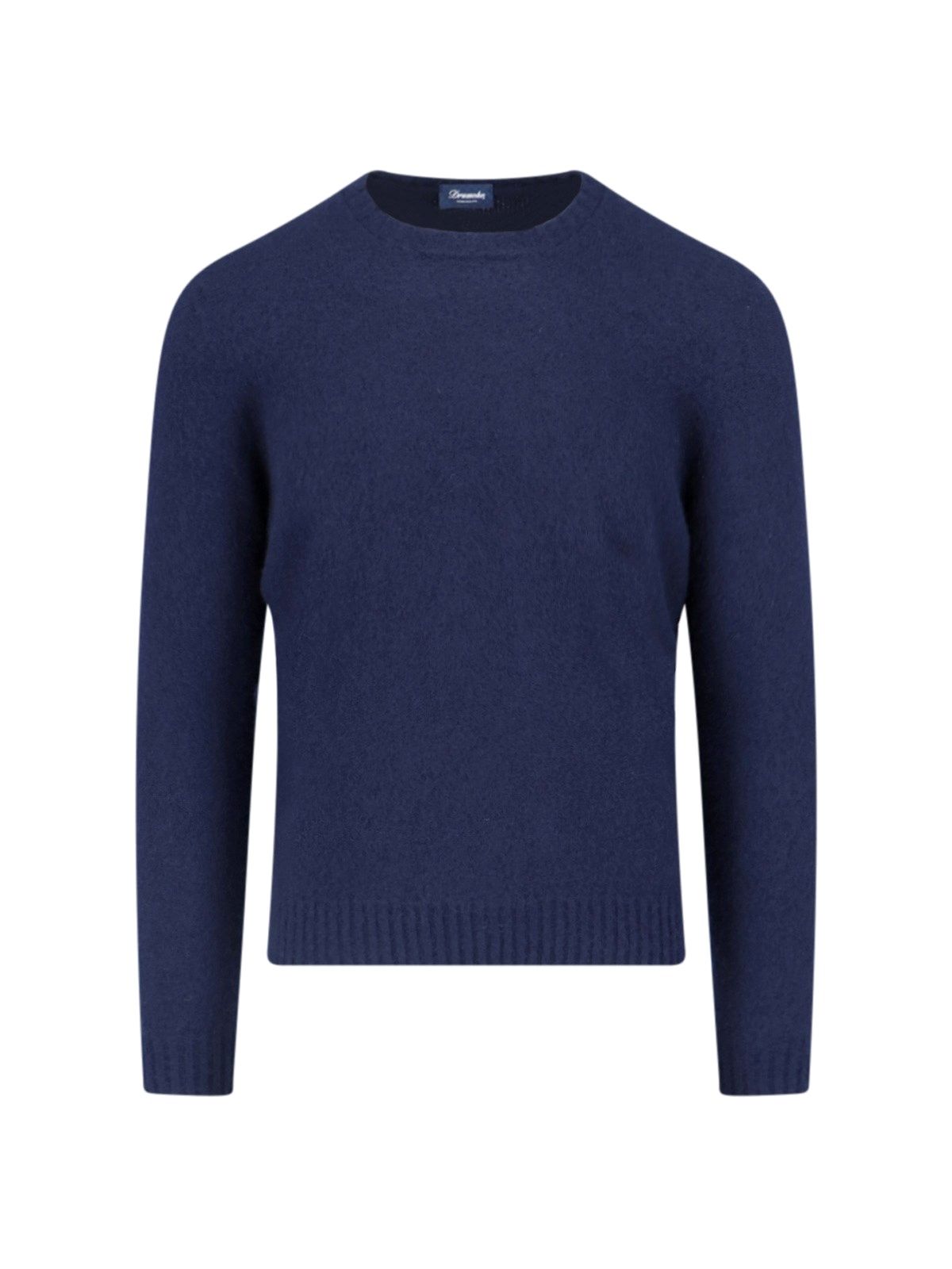 Maglia basic Drumohr, in lana blu, tonalità navy, finiture a costine, orlo dritto.