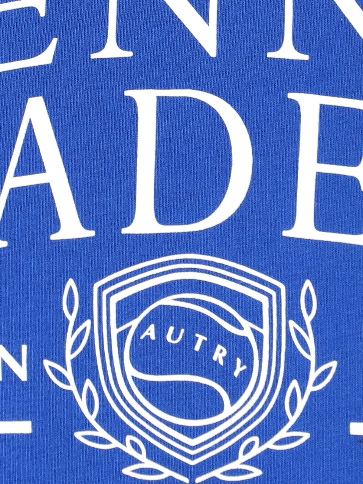 Autry "Tennis Accademy" T-shirt, in blue cotton, ribbed crew neck, short sleeves, white "tennis academy" logo print on the front, side logo label, straight hem.