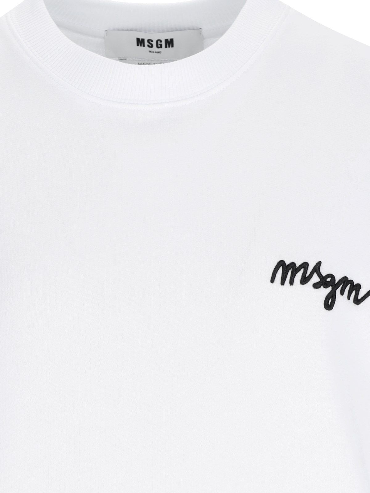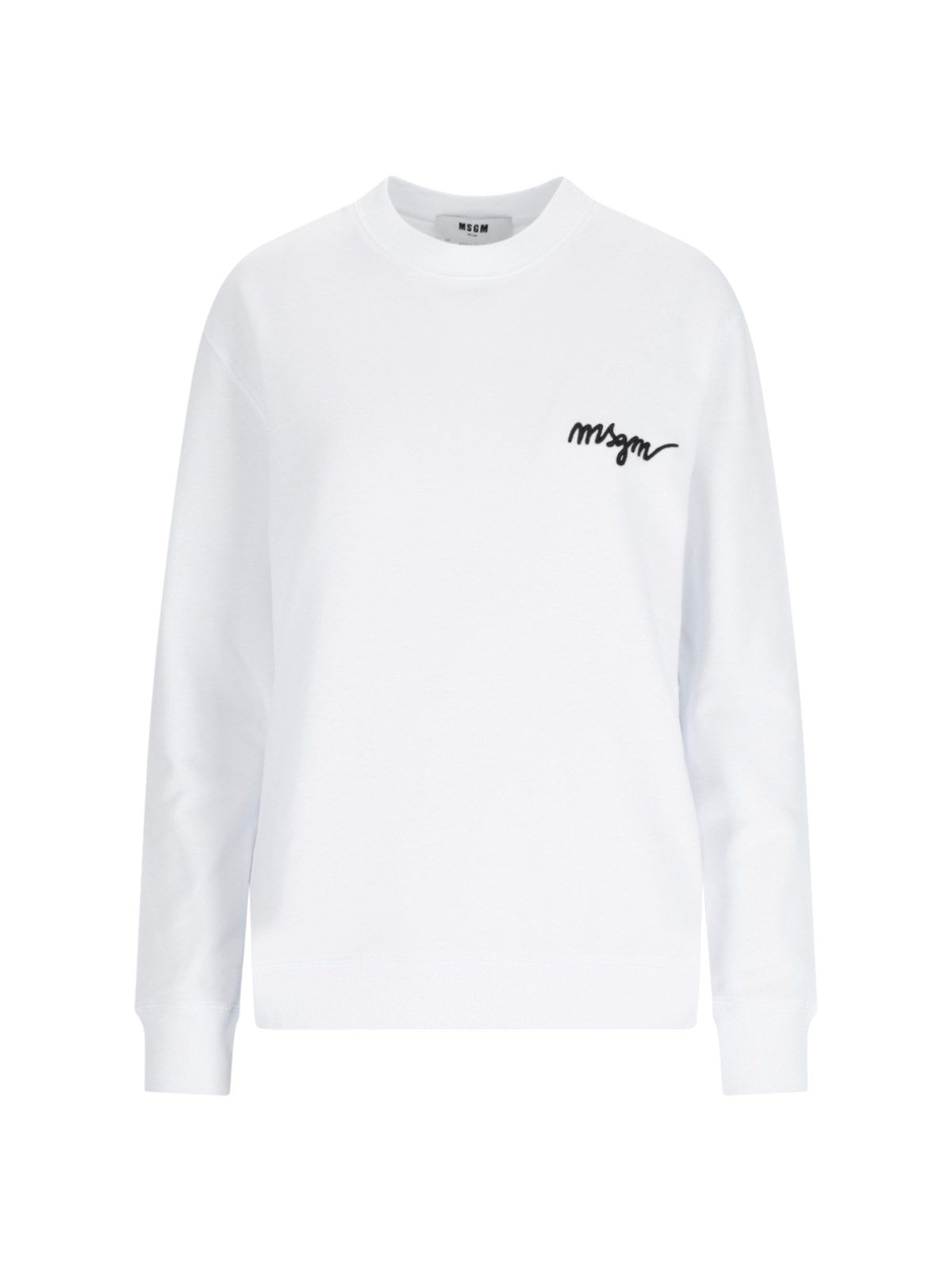 Felpa girocollo logo MSGM, in cotone bianco, colletto a costine, ricamo logo fronte a contrasto, polsini e fondo elastici, orlo dritto.