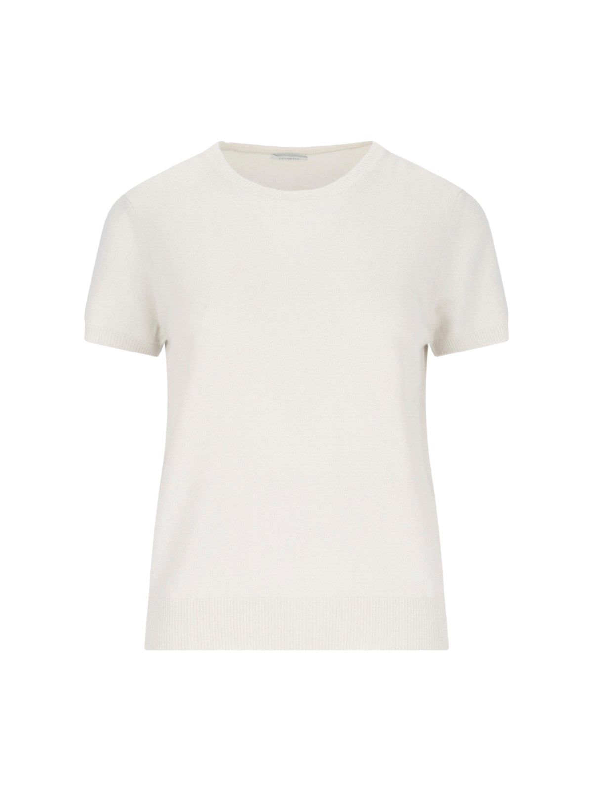 Maglia in cashmere Malo, bianco, girocollo, maniche corte, orlo dritto.