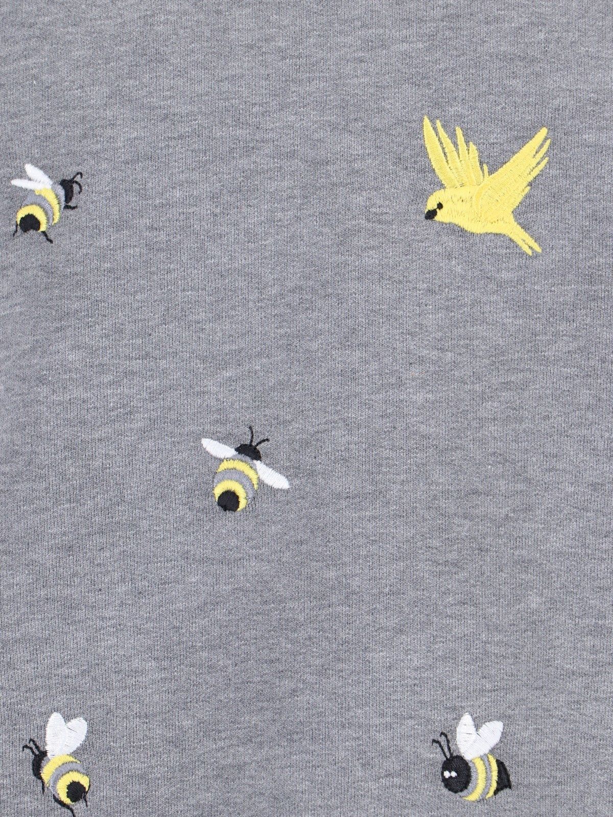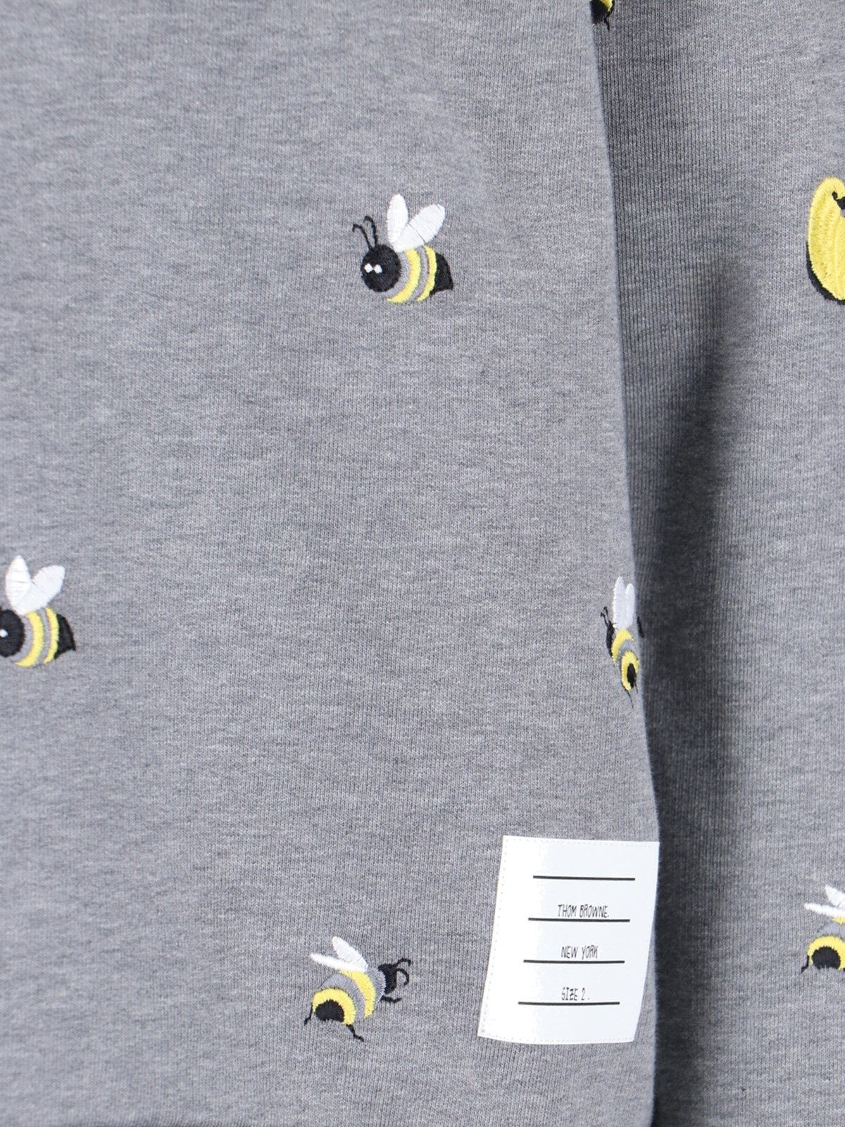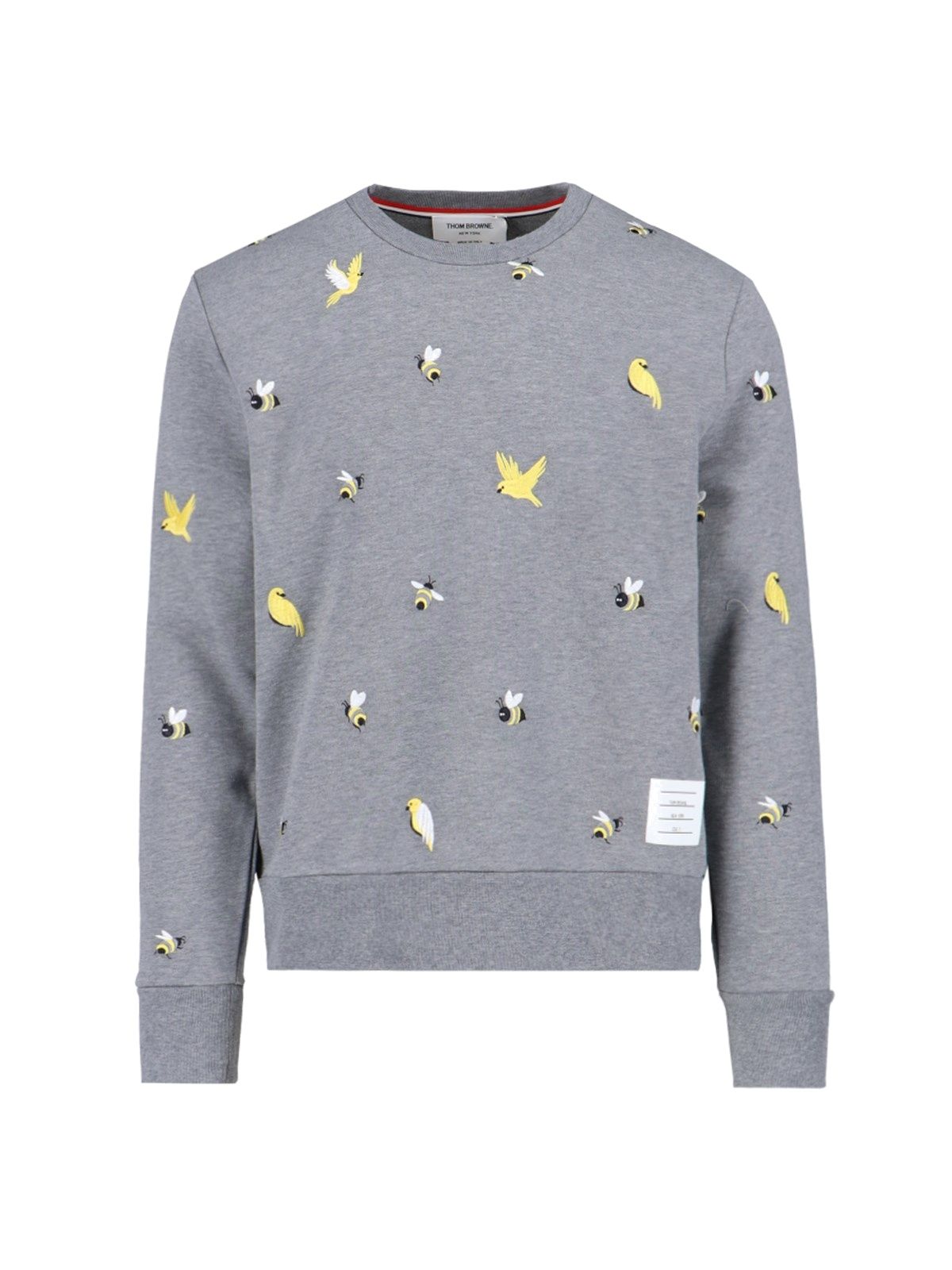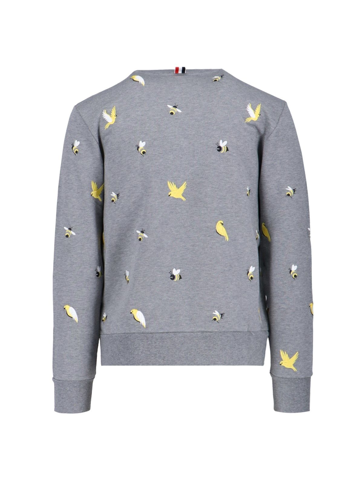 Felpa girocollo Thom Bowne, in cotone grigio, dettaglio ricami animali all-over, maniche lunghe, etichetta logo bianca fronte, finiture a costine, orlo dritto.