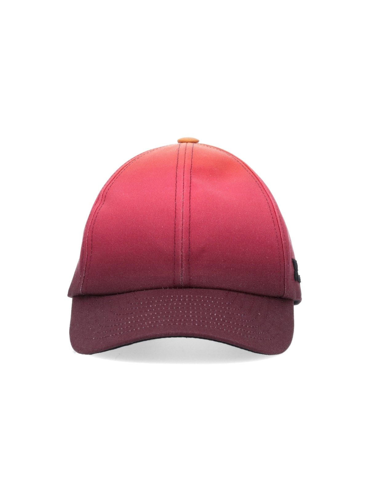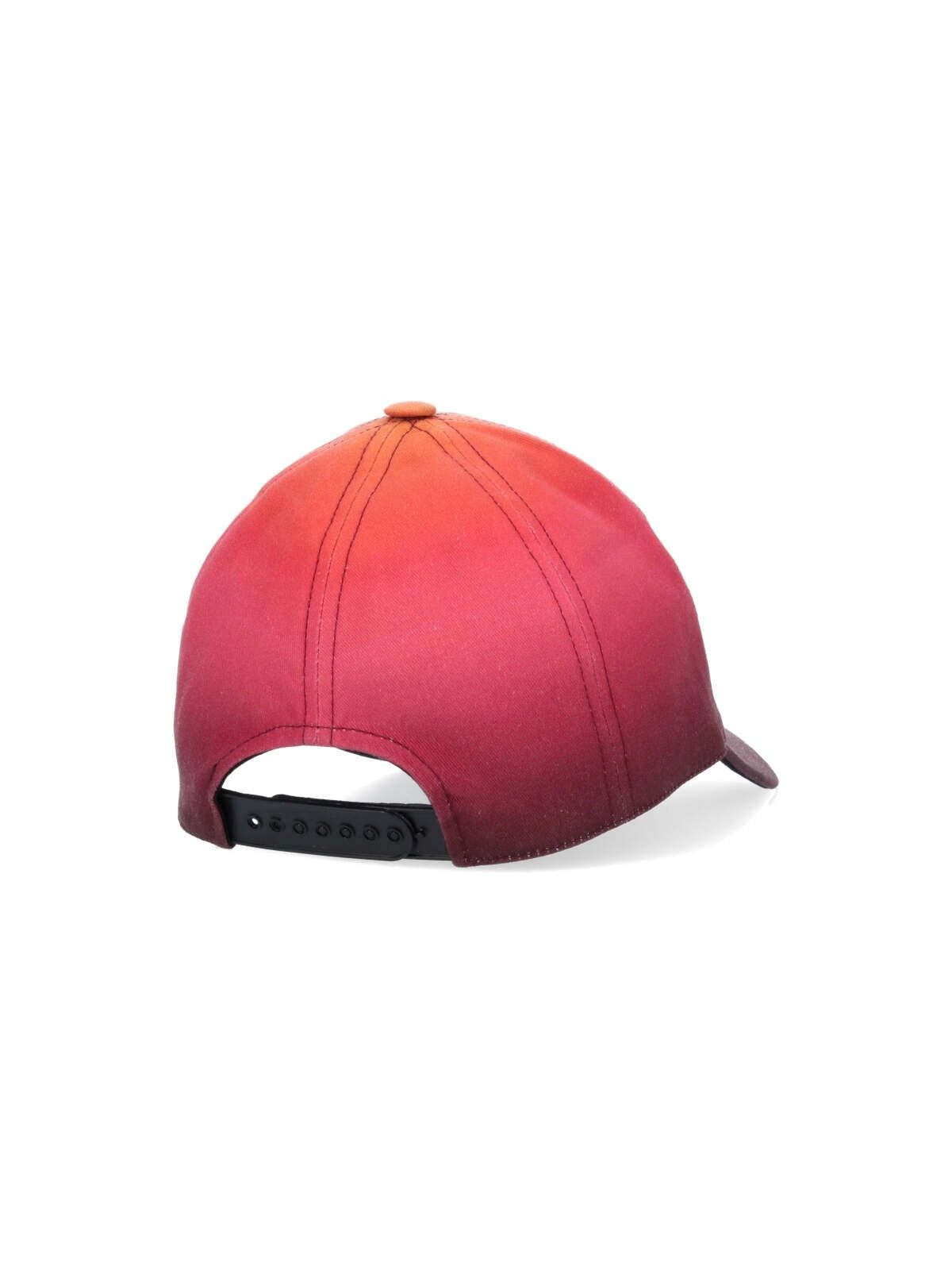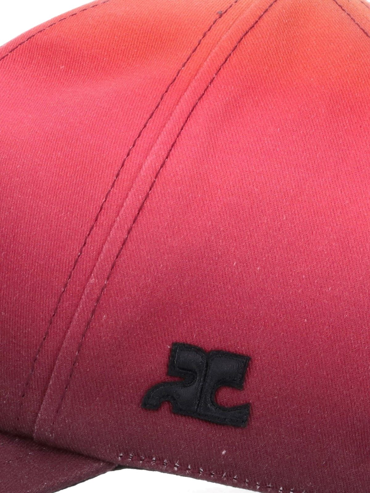 Cappello Baseball "Signature Sunset" Courrèges, in cotone arancione gradiente, visiera curva, patch nera logo laterale, cinturino regolabile retro.