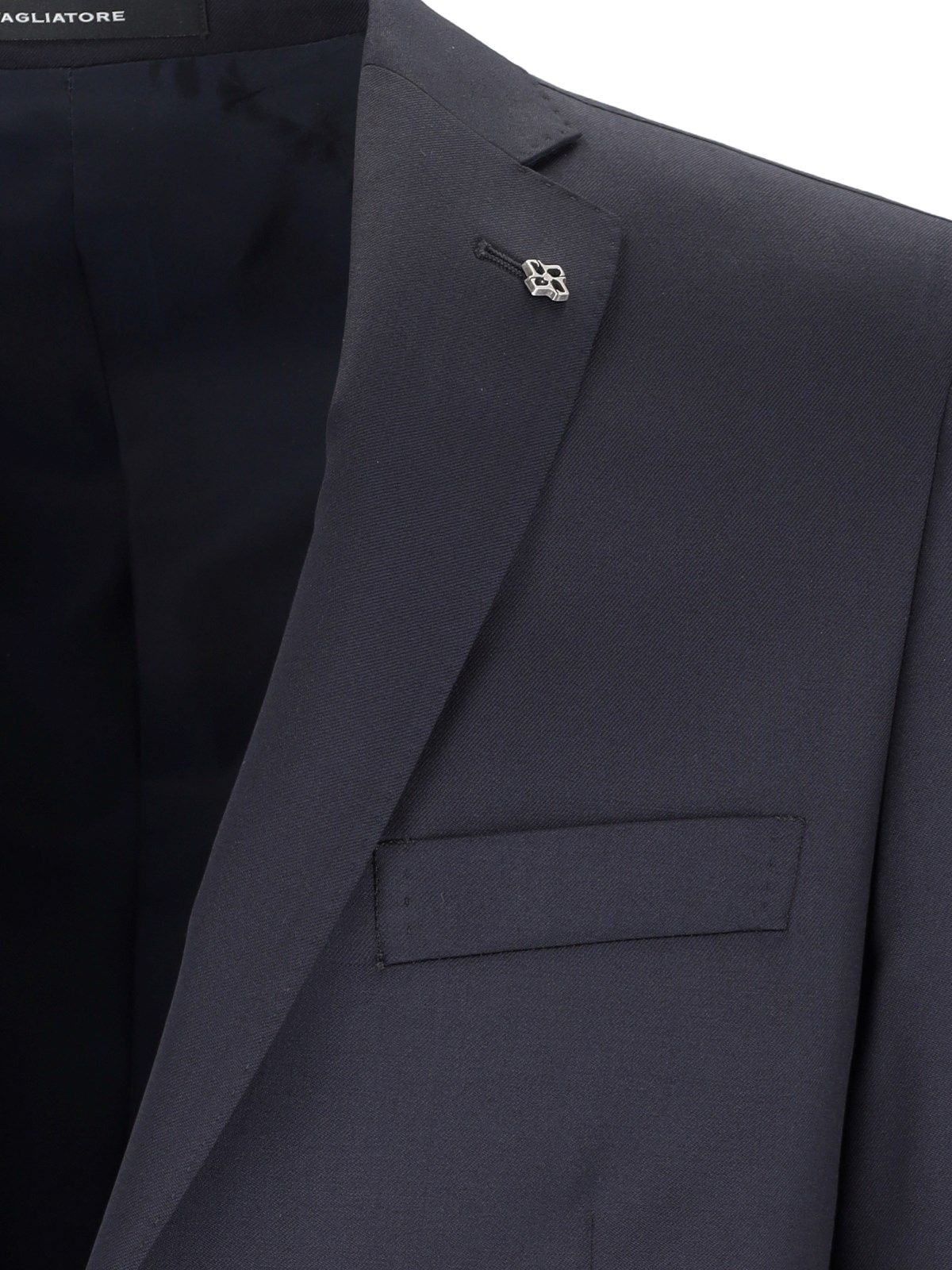 Completo monopetto Tagliatore, in esclusiva per Sugar, in lana blu, revers classico, chiusura bottoni, una tasca a filetto petto, due tasche patta frontali, bottoni polsini, orlo dritto, pantaloni sartoriali, pinces frontali, due tasche laterali, due tasche a filetto con bottone retro.