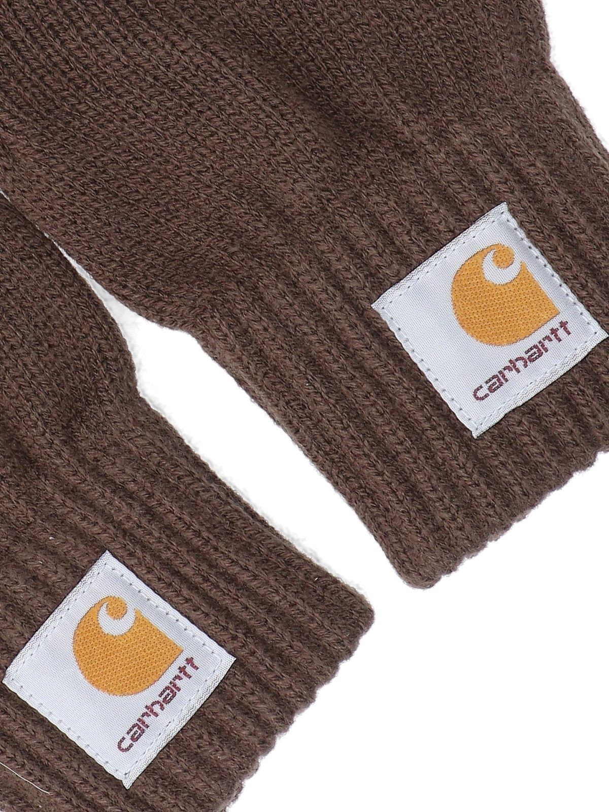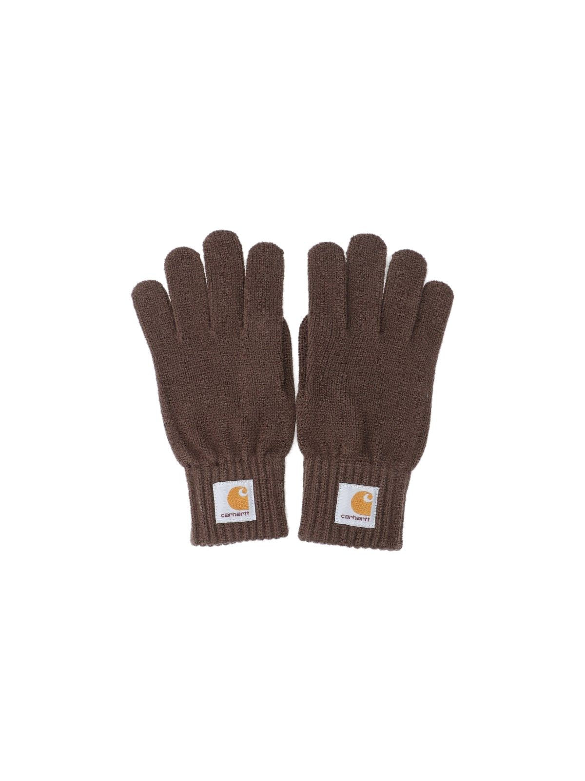 Guanti logo Carhartt WIP, in tessuto marrone, patch logo applicato polsino, finiture costine.
