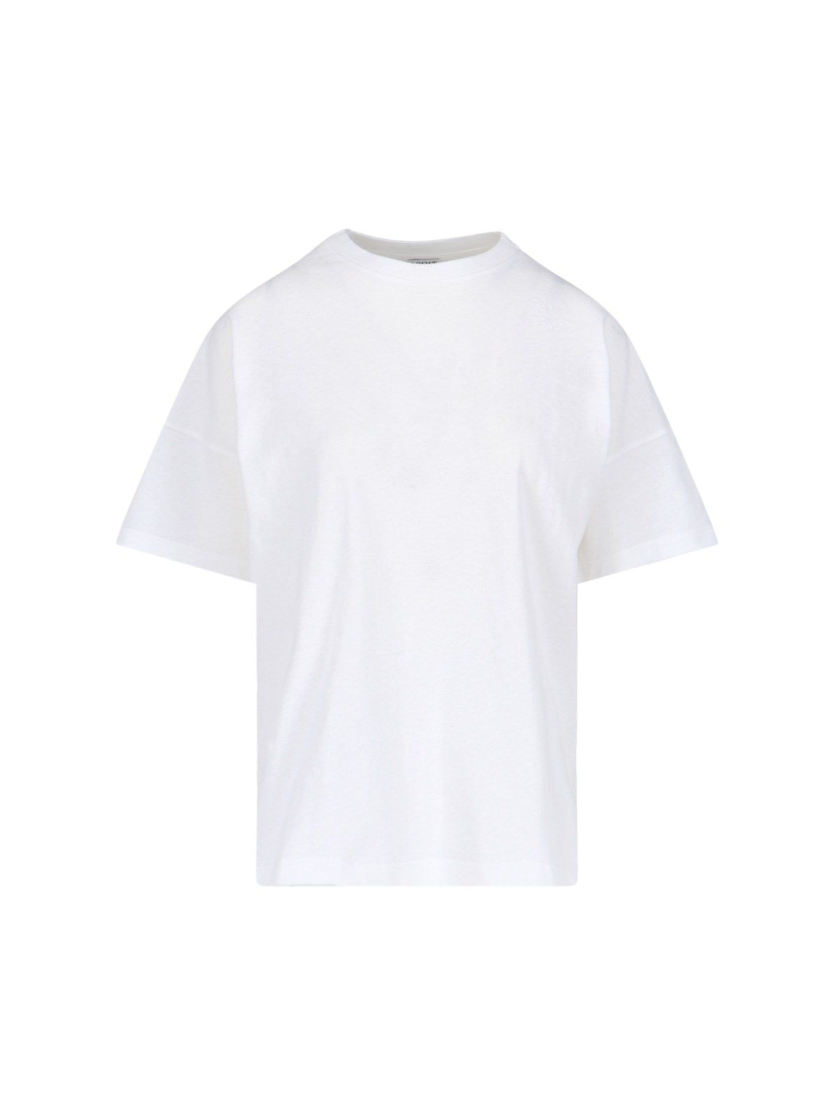 T-shirt logo Loewe, in jersey di cotone bianco, girocollo, maniche corte, ricamo logo Anagram tono su tono petto, finiture a costine, orlo dritto.