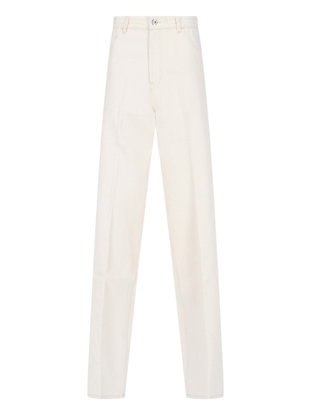 Jeans dritti Setchu, in lino e cotone panna, passanti cintura, chiusura zip e bottone, pinces centrali, design cinque tasche, orlo dritto.
