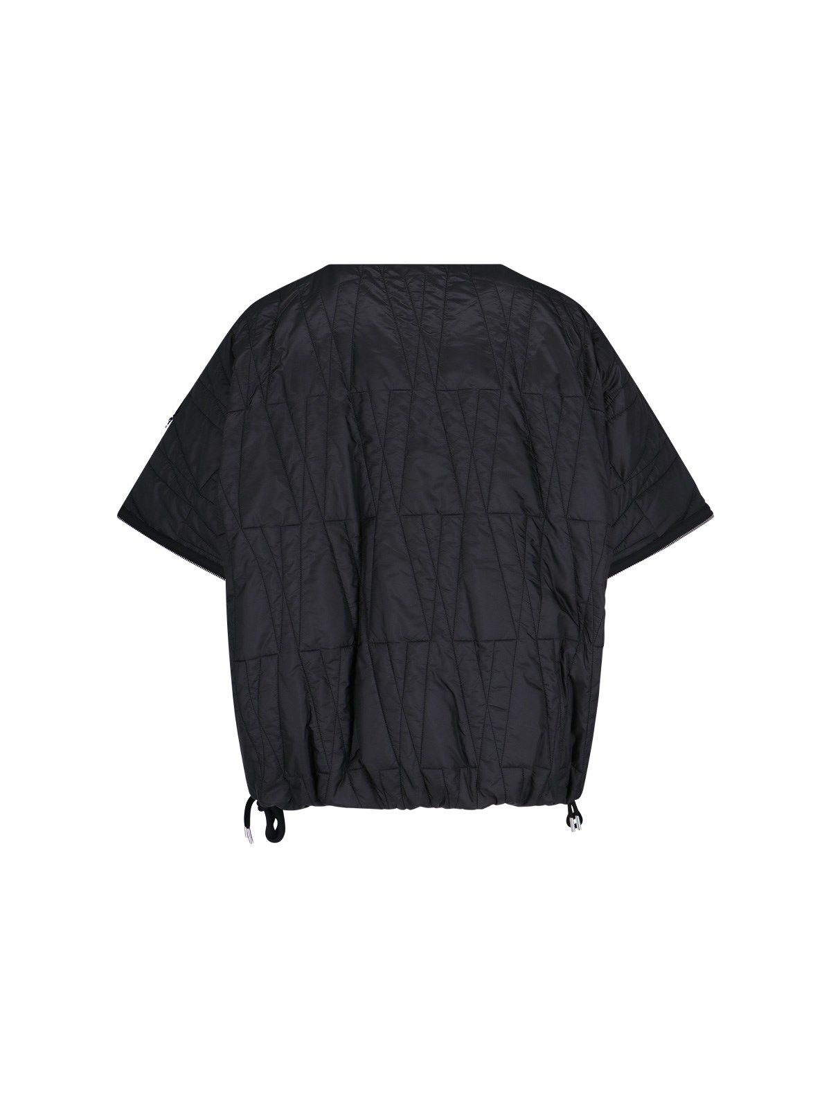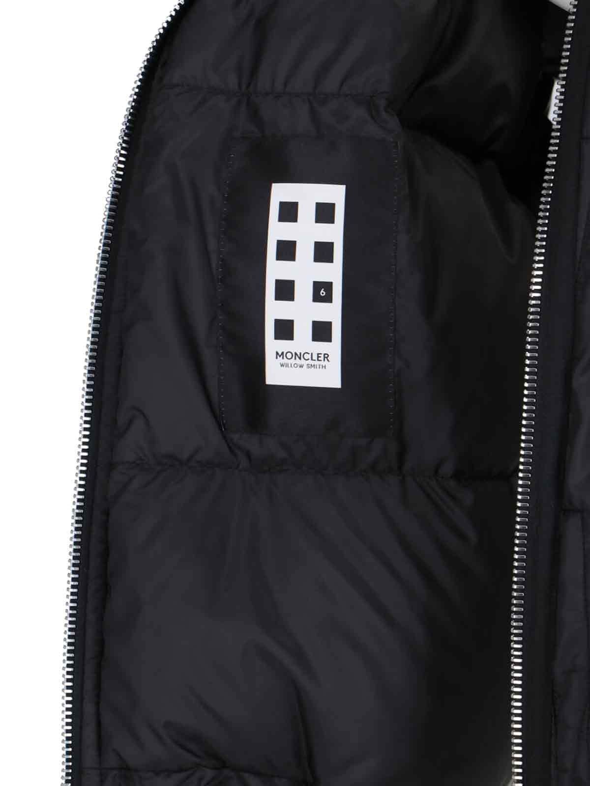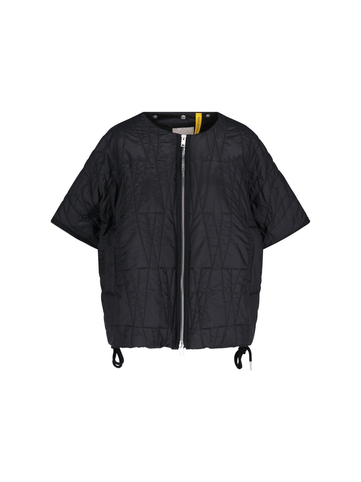 Piumino corto "Haissa 2 in 1" Moncler Genius X Willow Smith, in tessuto nero, design trapuntato ed imbottito, cappuccio coulisse rimovibile, dettagli cut-out laterali, a collo alto, chiusura doppia zip, due tasche bottone laterali, maniche rimovibili, patch logo tono su tono manica, coulisse su fondo, orlo dritto.