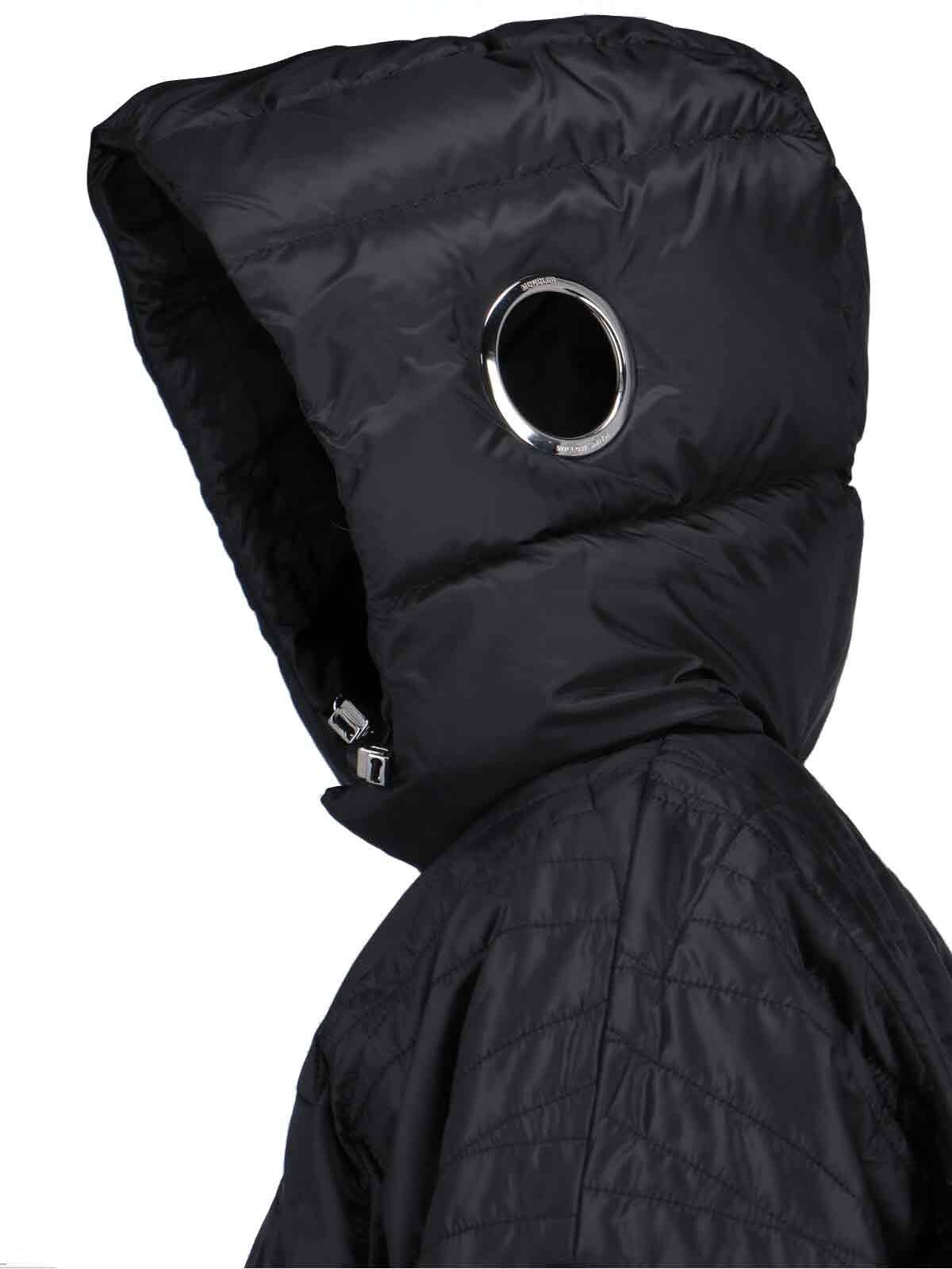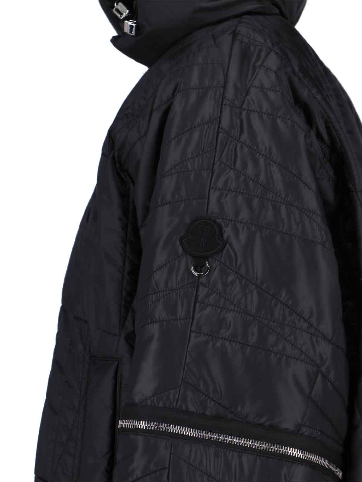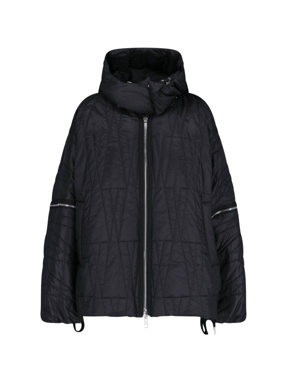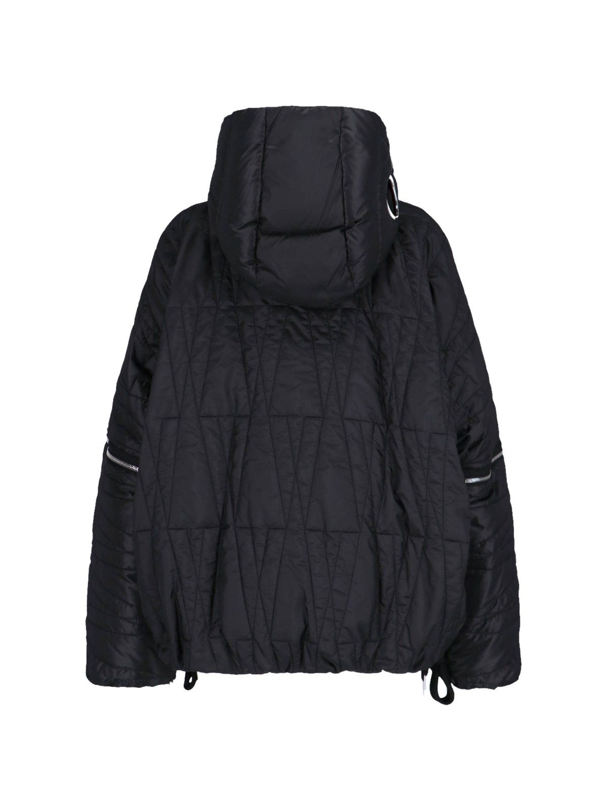 Piumino corto "Haissa 2 in 1" Moncler Genius X Willow Smith, in tessuto nero, design trapuntato ed imbottito, cappuccio coulisse rimovibile, dettagli cut-out laterali, a collo alto, chiusura doppia zip, due tasche bottone laterali, maniche rimovibili, patch logo tono su tono manica, coulisse su fondo, orlo dritto.