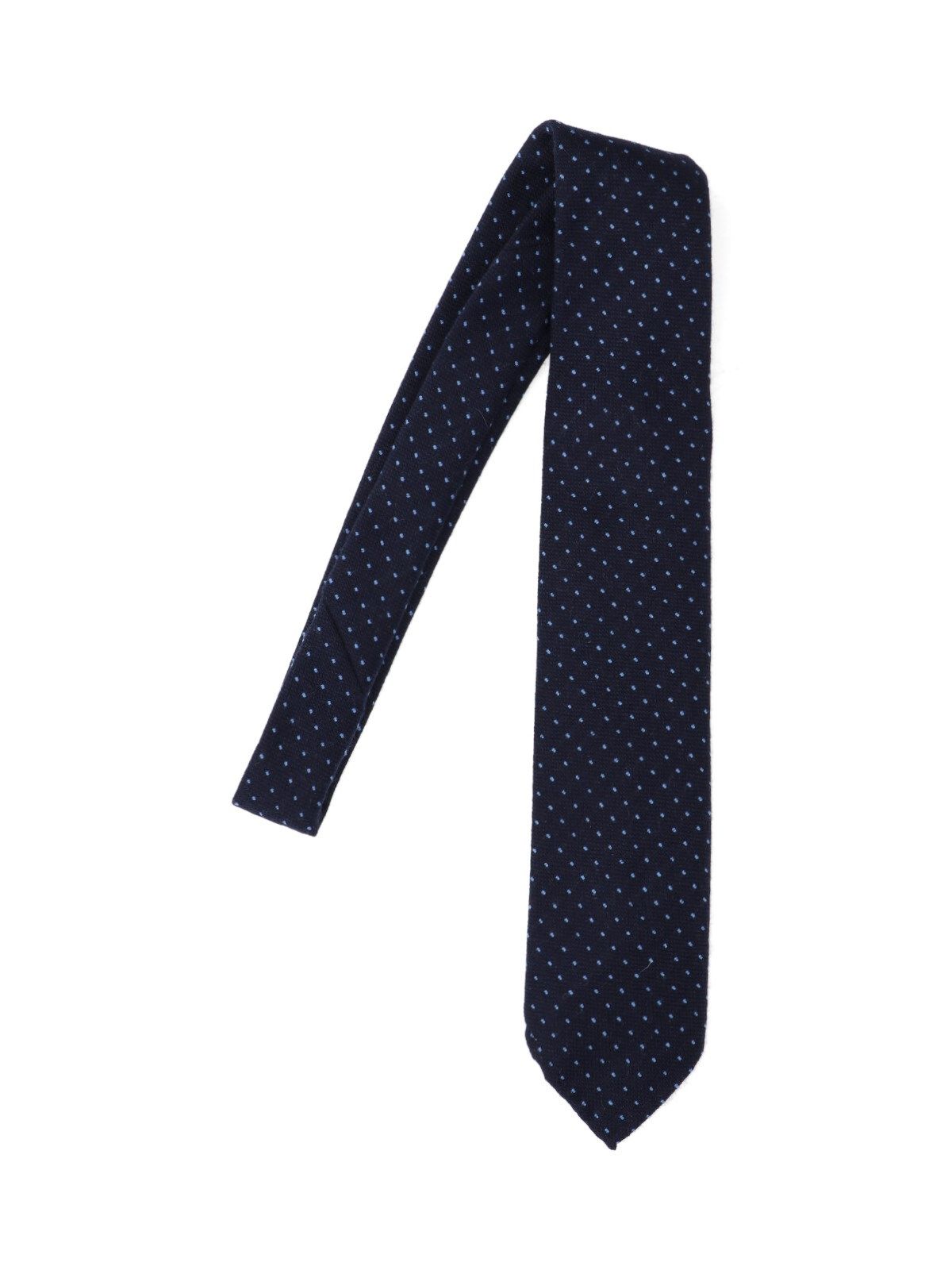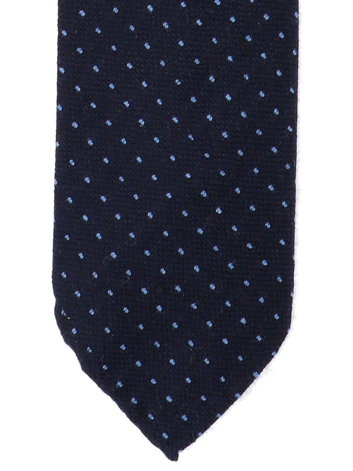 Cravatta a pois Cesare Attolini, in cashmere blu, tonalità navy, motivo a pois azzurri, regolabile.