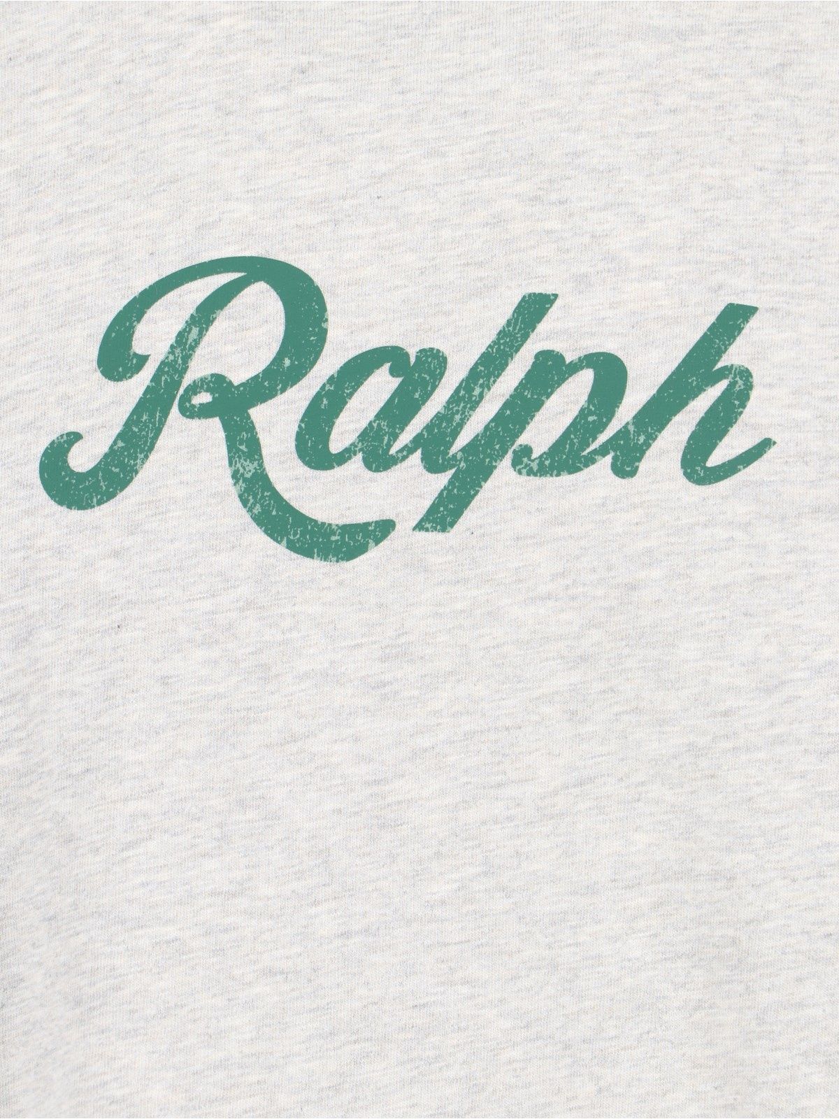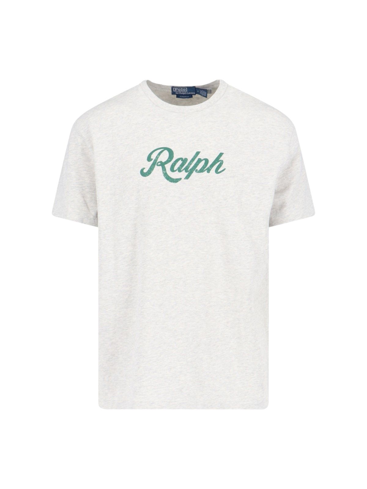 T-shirt logo Polo Ralph Lauren, in cotone grigio, girocollo, stampa faded logo verde fronte, finiture a costine, orlo dritto.