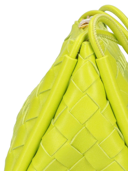 Pouch Tracolla Intrecciato Bottega Veneta, in pelle, colore verde, tonalità lime, motivo intrecciato all-over, dettaglio tracolla annodata, chiusura zip, uno scomparto principale interno.