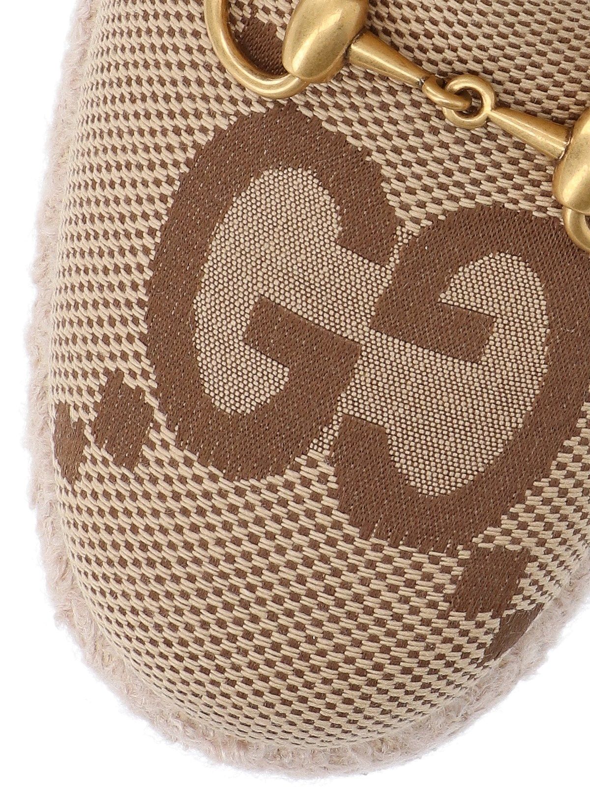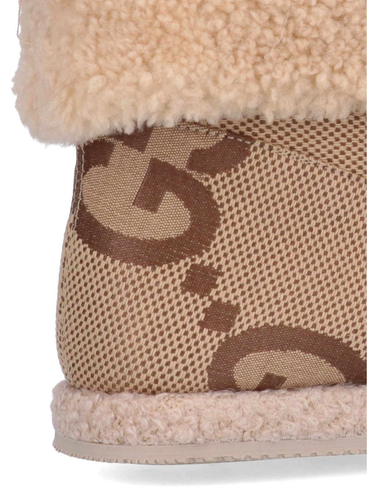 Stivaletti con Morsetto Gucci, monogramma, tessuto Jumbo GG beige ed ebano, applicazione Morsetto frontale, Fodera in lana merinos, Suola in gomma.
