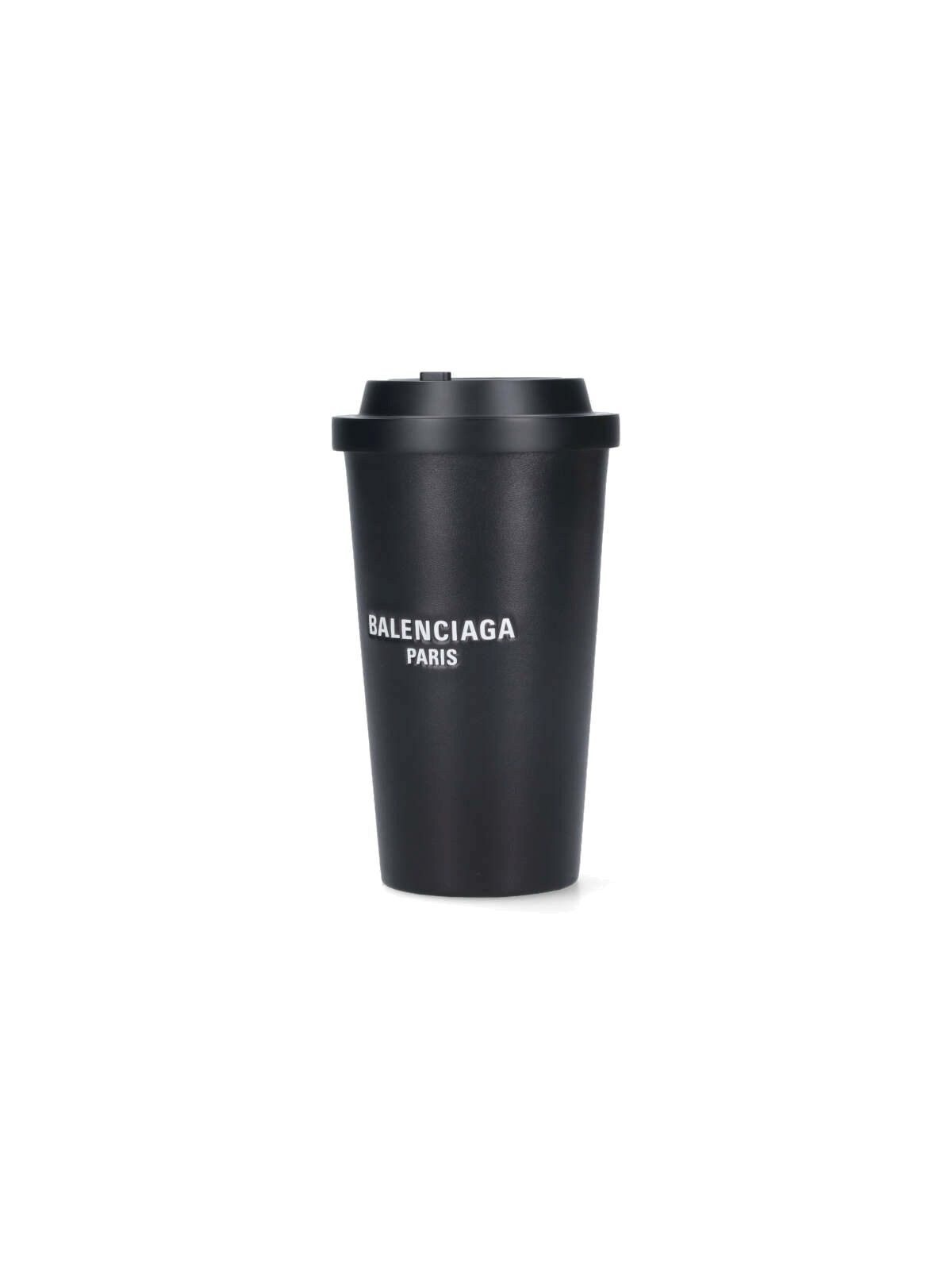 Clutch "9 Am" Balenciaga, in pelle nera, chiusura superiore, dettaglio logo, dettaglio logo a contrasto bianco fronte, scomparto interno unico.