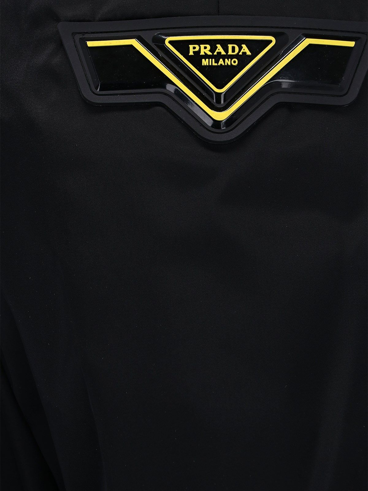 Pantaloni Re-nylon prada, chiusura zip e bottone, tasche laterali, tasca a filetto posteriore, applicazione gomma, gamba dritta, design foot-strap.