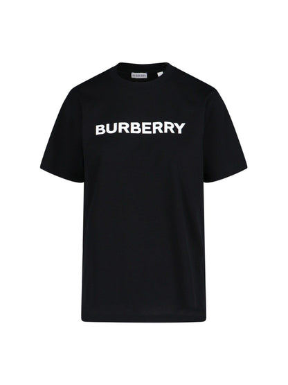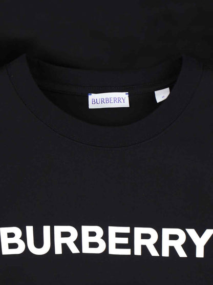 T-shirt logo Burberry, in cotone nero, girocollo, maniche corte, stampa logo a contrasto fronte, orlo dritto.